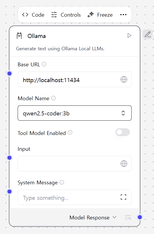 - 내 pc에서는 qwen2.5-coder:3b 모델이 한계인것으로 보여 해당 모델을 설치하고, 설정 tab에서 model명은 변경 하였다.