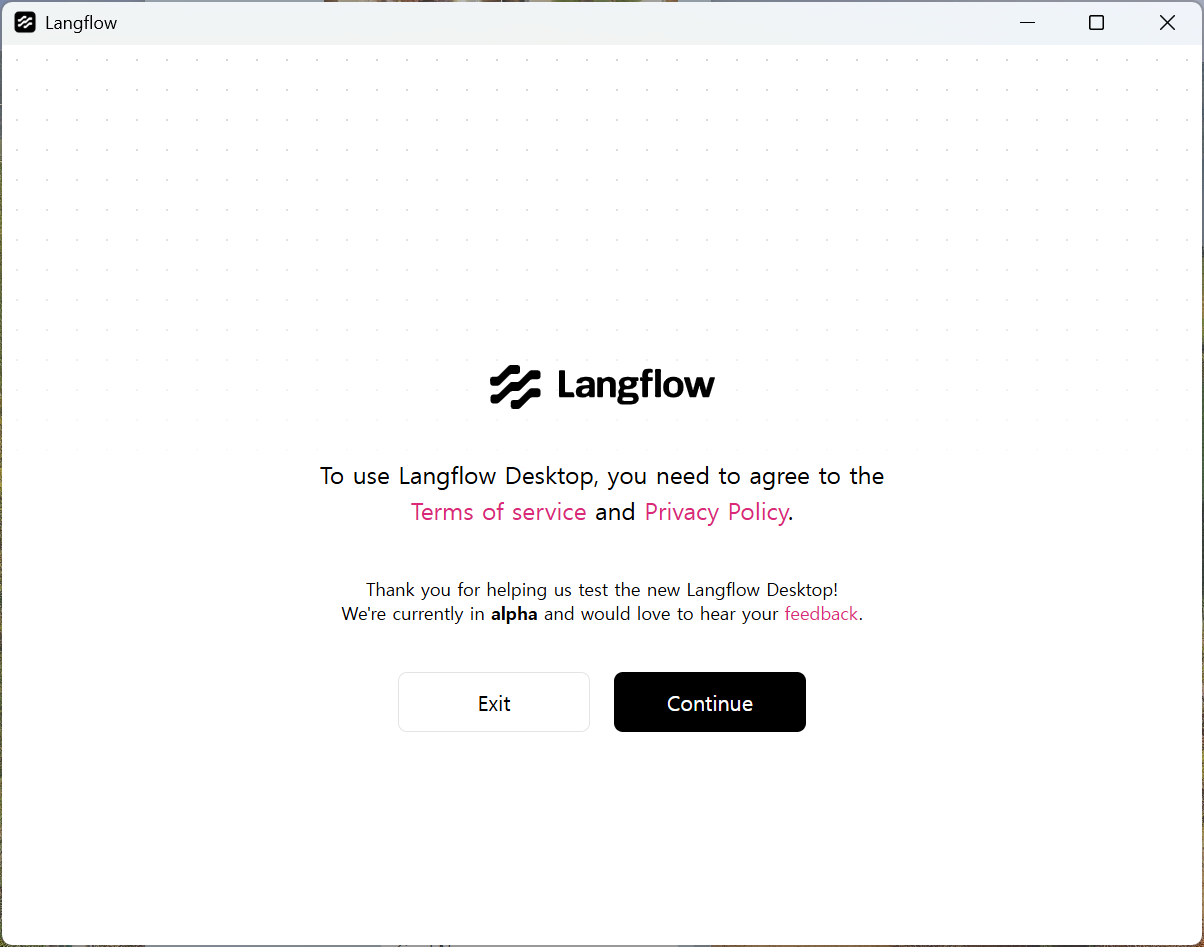 1. desktop 설치 파일 다운로드 url 접속 : https://www.langflow.org/desktop