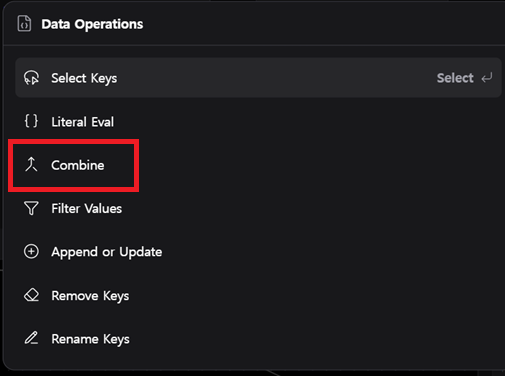 - "Data Operations" 추가 - Operations는 Combine을 선택한다 > 응답 결과를 하나로 합쳐 주기 위해서.