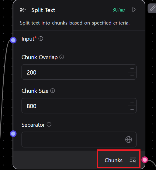 2. Split Text 설정 확인 (청크 크기, 오버랩)