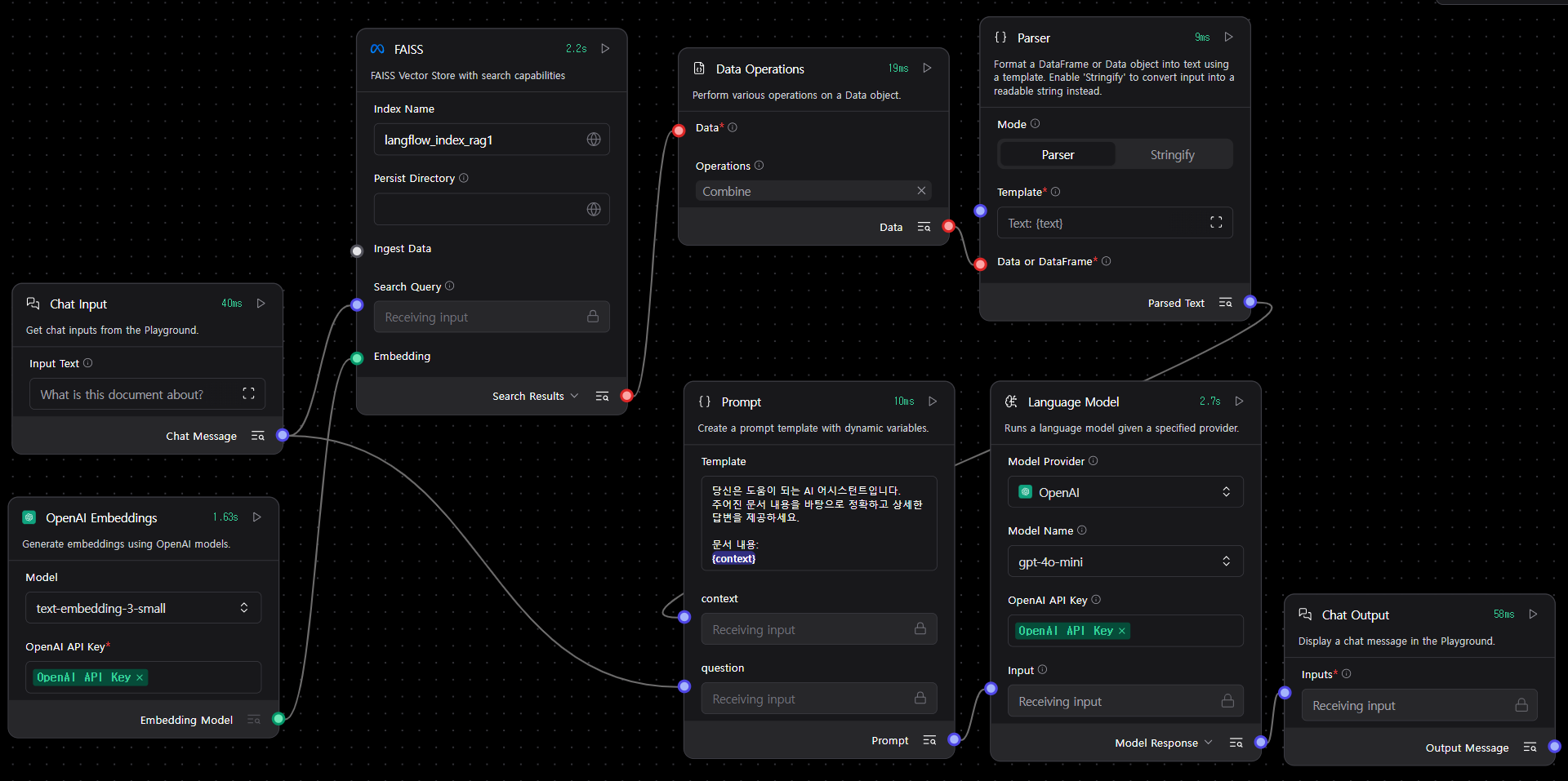 LangFlow의 Vector Store RAG 템플릿은 실무에서 바로 쓸 수 있는 수준으로 잘 만들어져 있다.