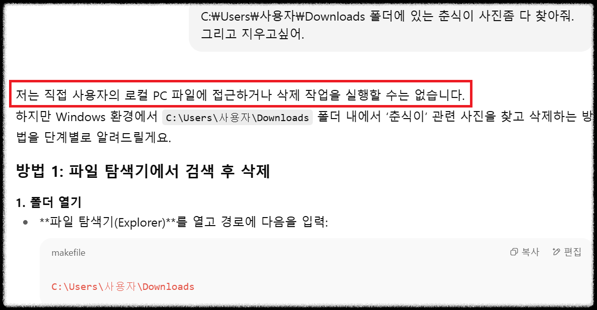 - gpt : 로컬 PC 파일(폴더)에 접근조차 불가능하다.