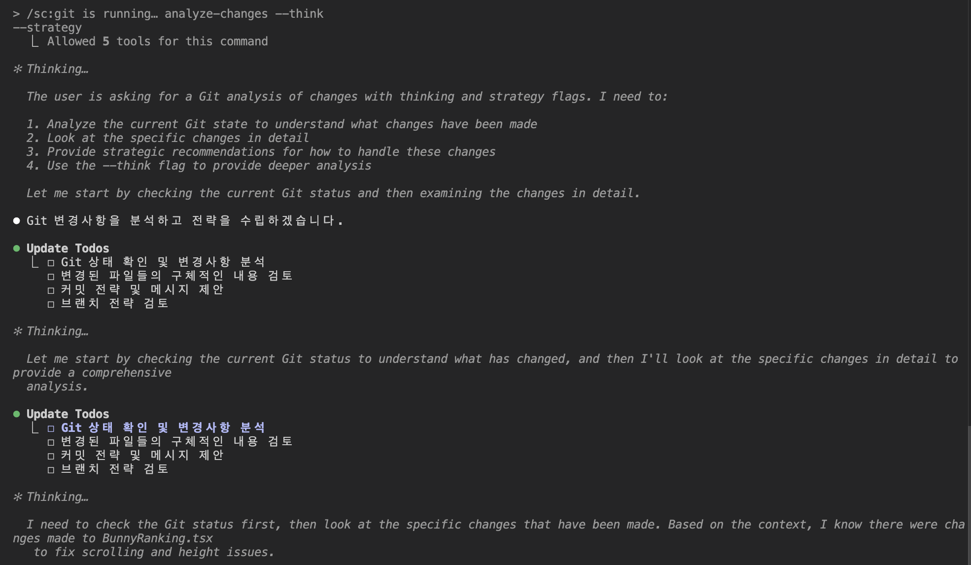 - 성능 최적화: /sc:analyze --focus performance --think --seq로 게임 프레임율 개선