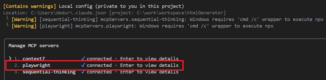 claude mcp add playwright -- cmd /c npx -y @executeautomation/playwright-mcp-server