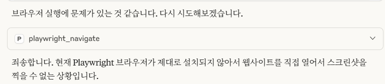 - Claude Desktop 재시작 > Claude Desktop을 완전히 종료하고 다시 실행하면 Playwright MCP가 연결된다.