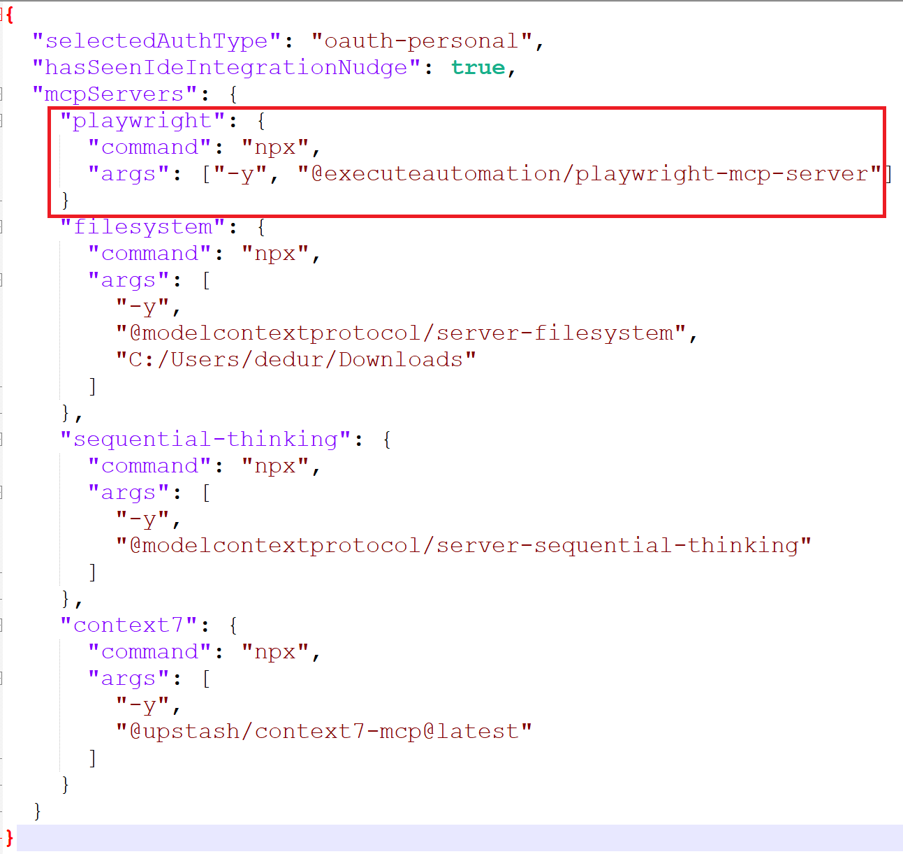 "args": ["-y", "@executeautomation/playwright-mcp-server"]