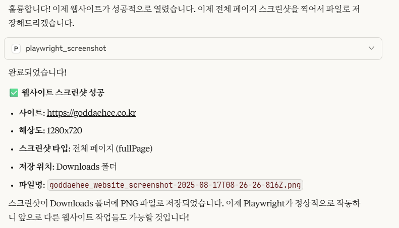 "https://goddaehee.co.kr 열고 1280x720으로 보고, fullPage 스크린샷 찍어서 파일로 저장해줘.”"