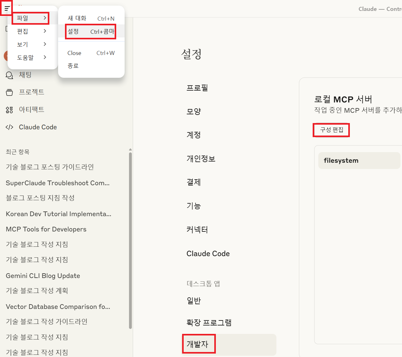- Claude Desktop 설정 파일을 열어 보자.