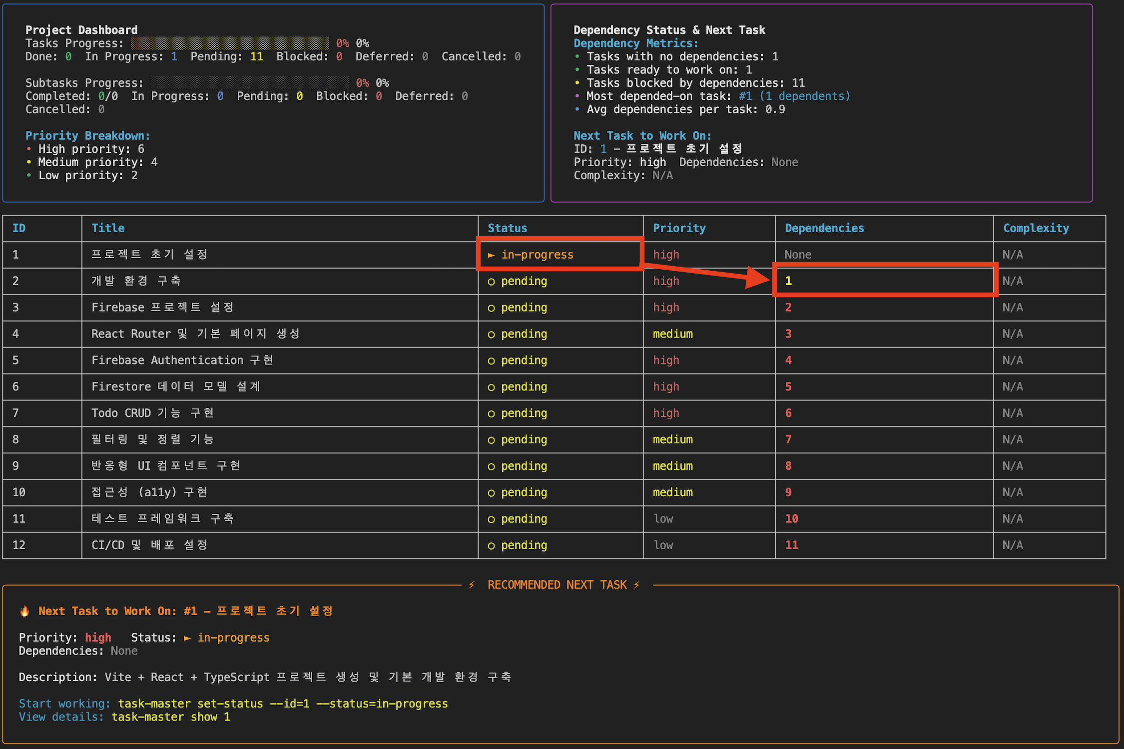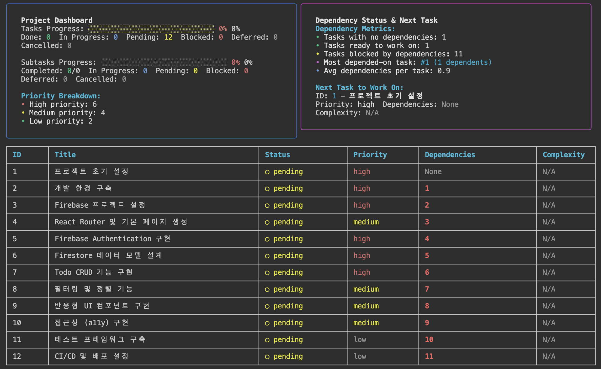 Task Master AI의 가장 큰 강점은 PRD를 기반으로 프로젝트를 체계적으로 관리한다는 점이다.