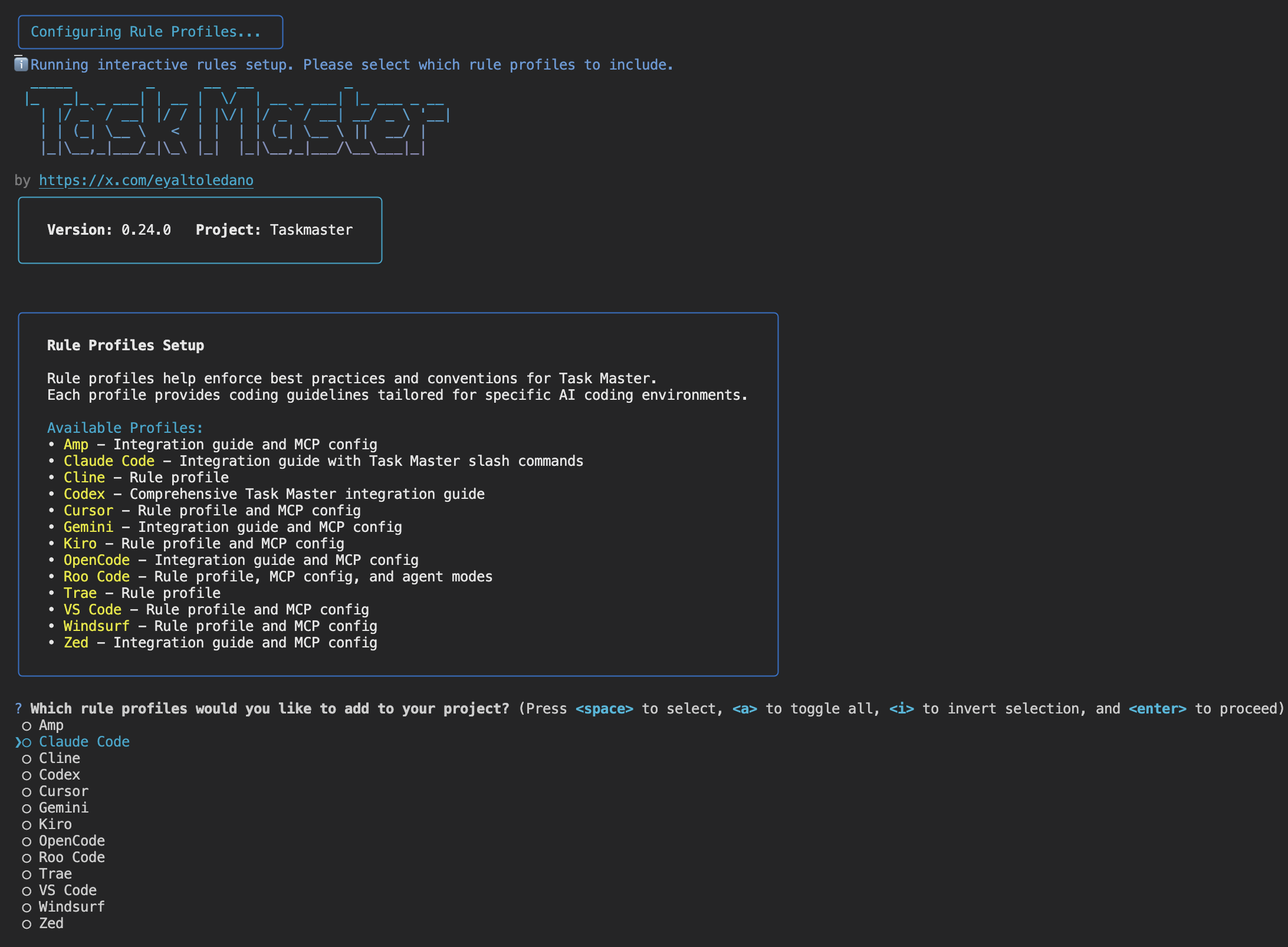 | Claude Code | Task Master의 명령어(slash commands)와 연동 가능한 규칙 설정 |