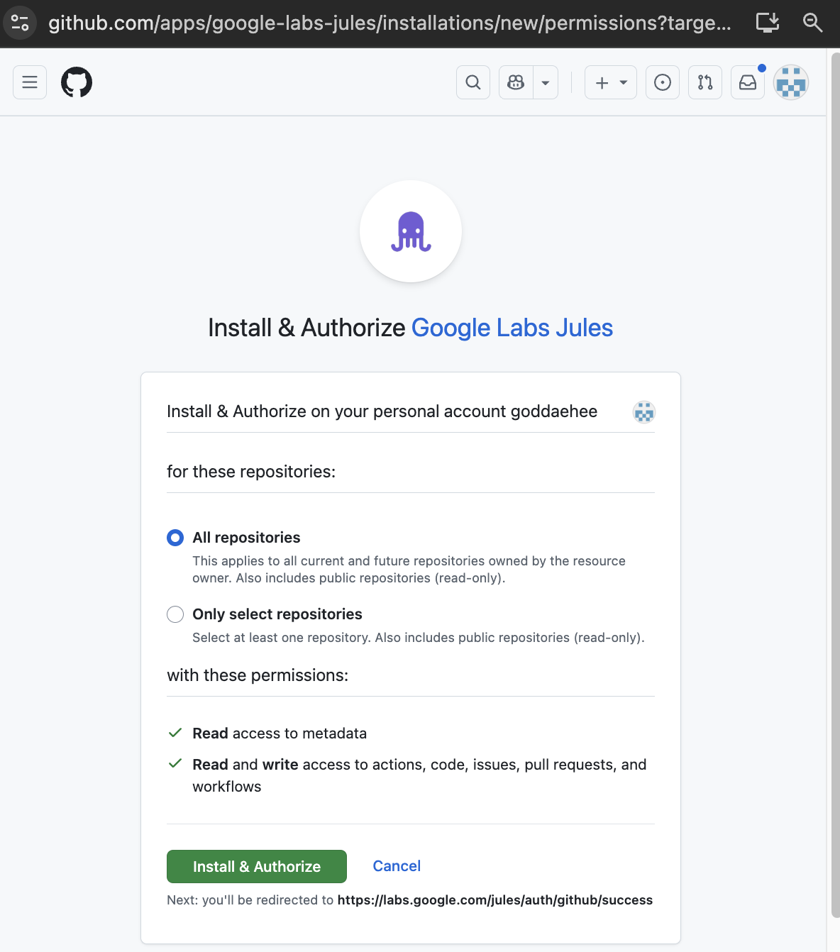 줄스를 사용하려면 먼저 GitHub 계정과 연동해야 한다. 설정 과정은 생각보다 간단했는데, 몇 가지 주의할 점이 있었다.