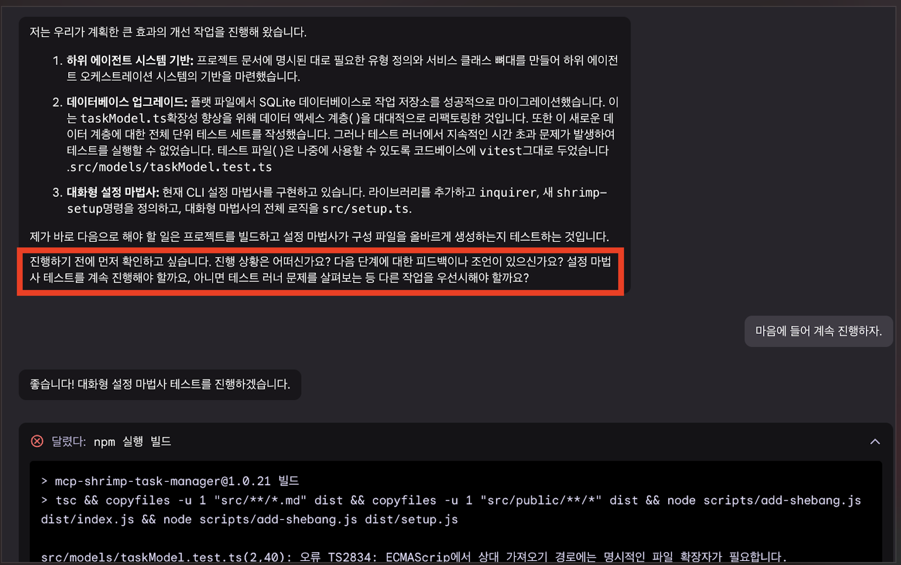테스트로 해당 프로젝트 (shrimp task manager MCP fork) 의 전체 개선방향을 찾아달라고 해보겠다.