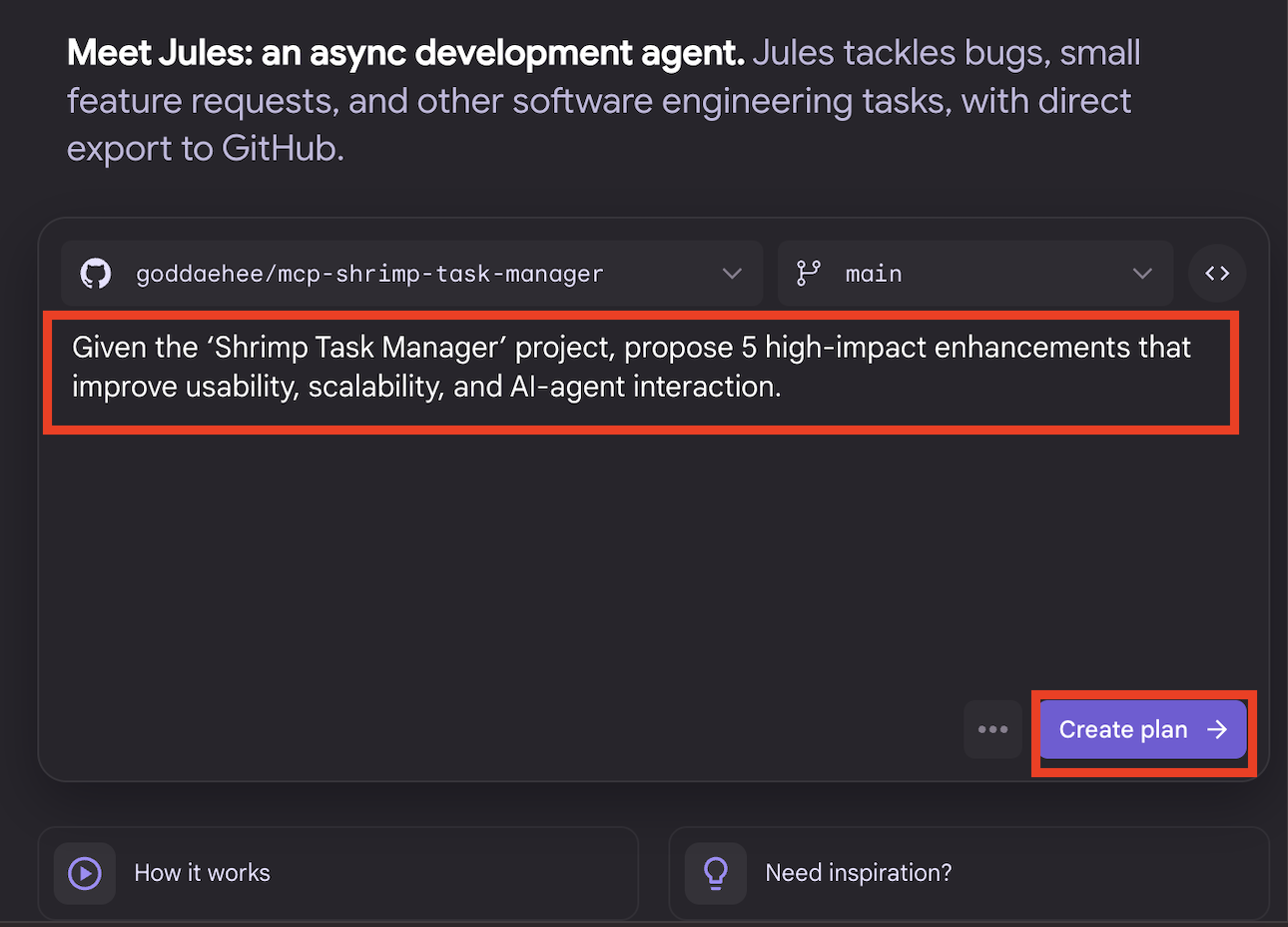 "Give me a plan" 버튼을 클릭하니 줄스가 작업 계획을 생성했다.