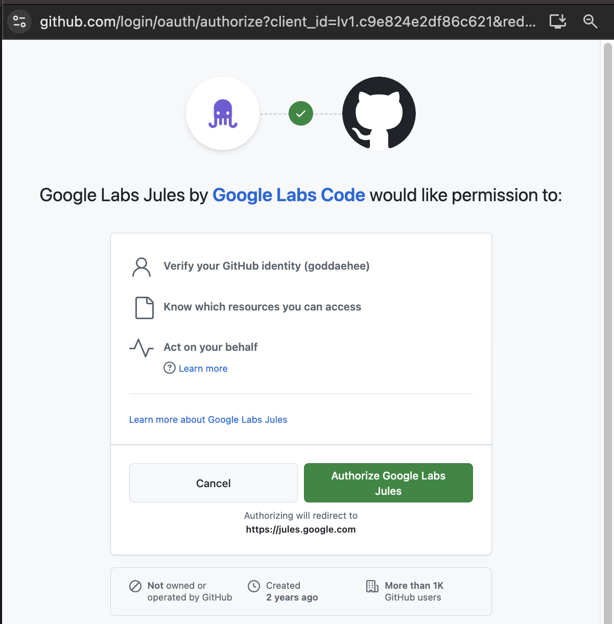 1. jules.google.com 접속 후 구글 계정으로 로그인한다. ( https://jules.google.com/ )