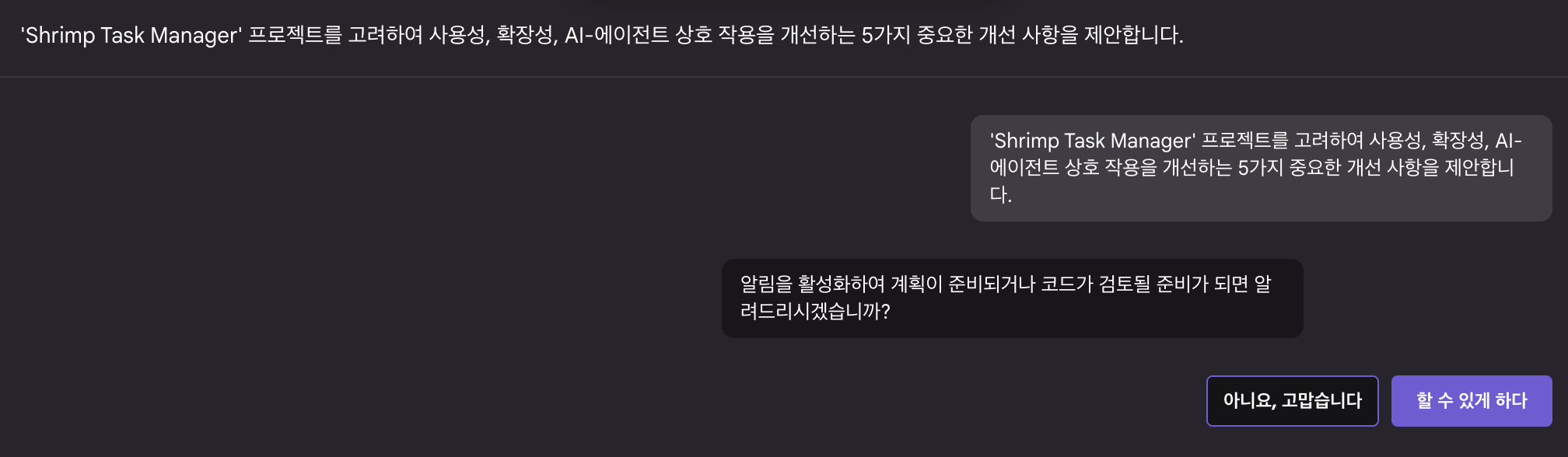 - ‘Shrimp Task Manager’ 프로젝트를 고려할 때, 사용성, 확장성, 및 AI 에이전트와의 상호작용을 개선하는 5가지 고영향력 개선 사항을 제안해줘.