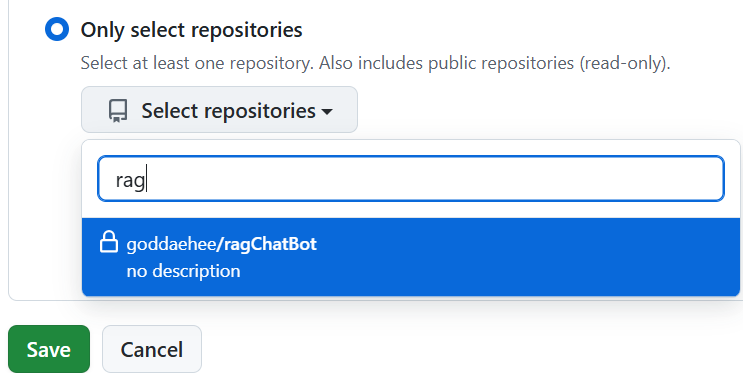 - 나의 경우는 해당 repository 하나를 임의 지정 하였다.