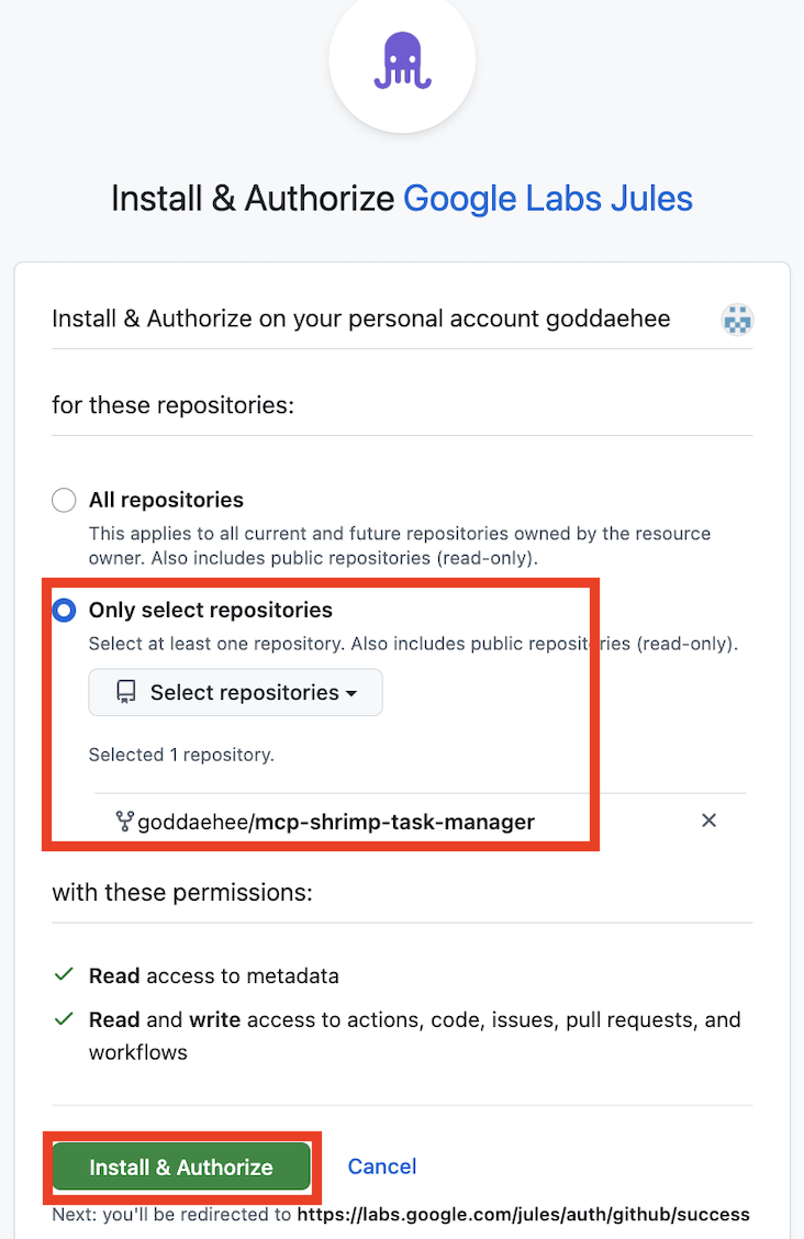 4. GitHub OAuth 승인 및 저장소 권한 설정