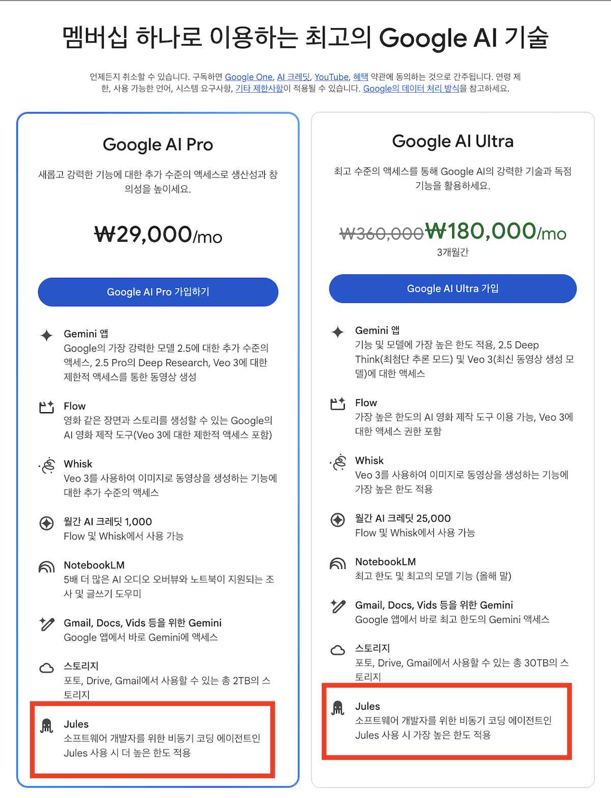 - Google AI Pro ($19.99/월): 5배 높은 제한