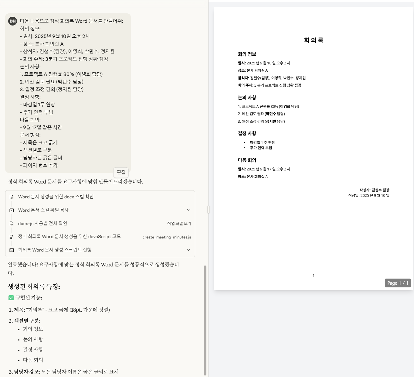 | 파일 생성 | 제한적 | 다양한 형식 지원 |