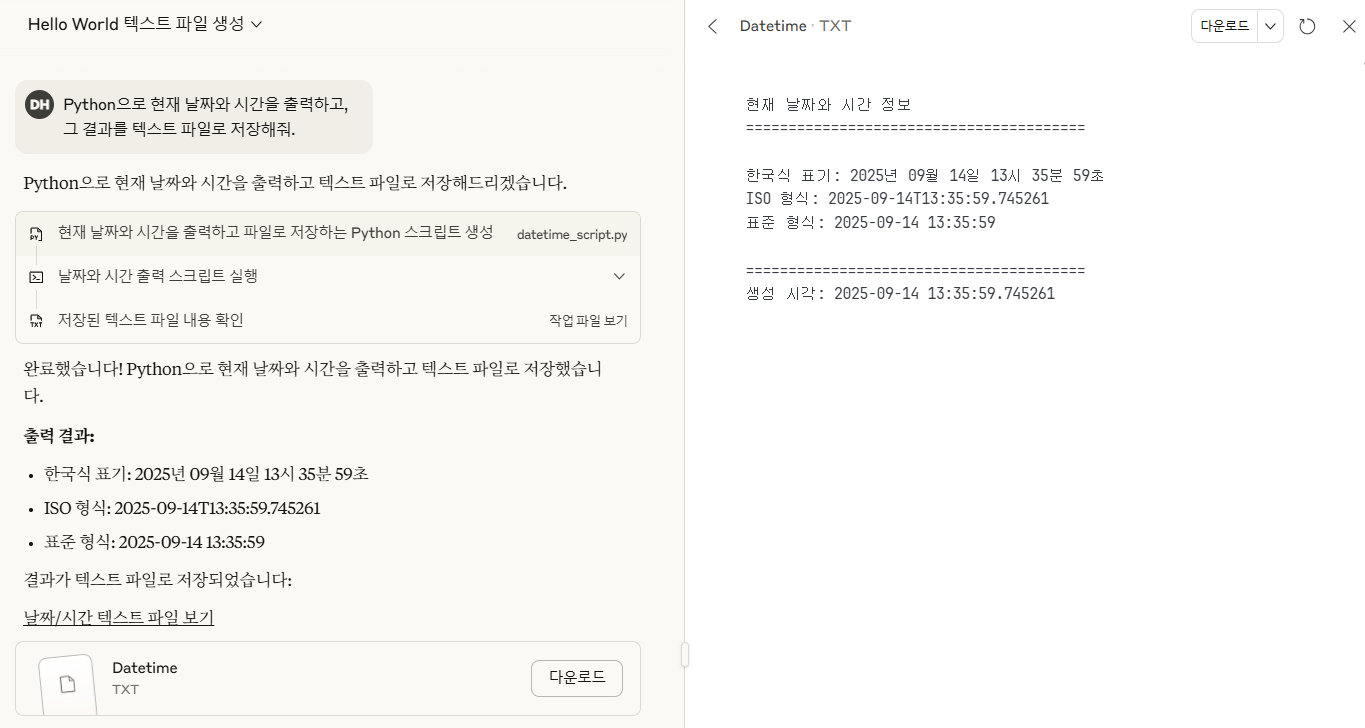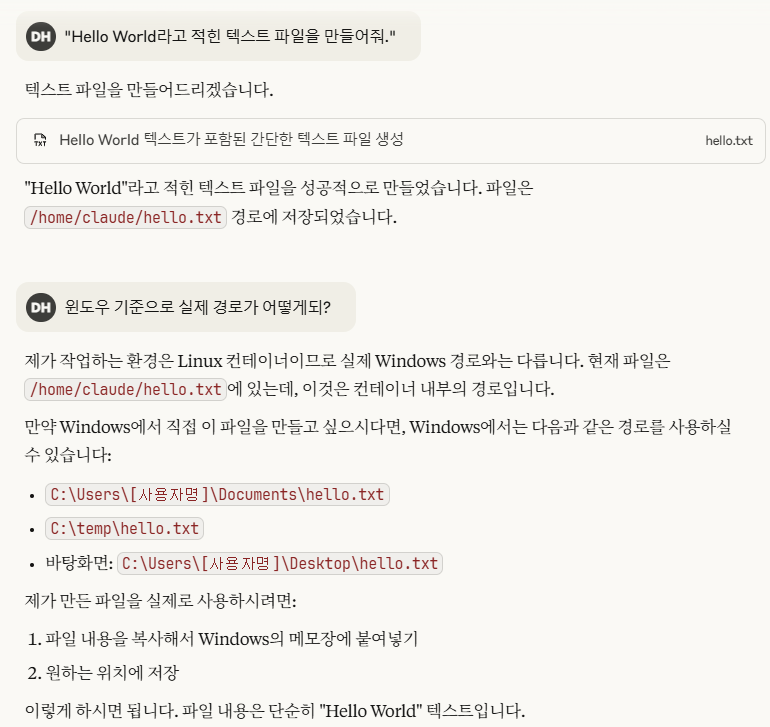 Claude를 통해 "private computer environment"에서 코드를 작성하고 실행할 수 있다. 단순한 텍스트 응답을 넘어 실제 파일을 생성하는 "active collaborator"가 되었다고 한다.