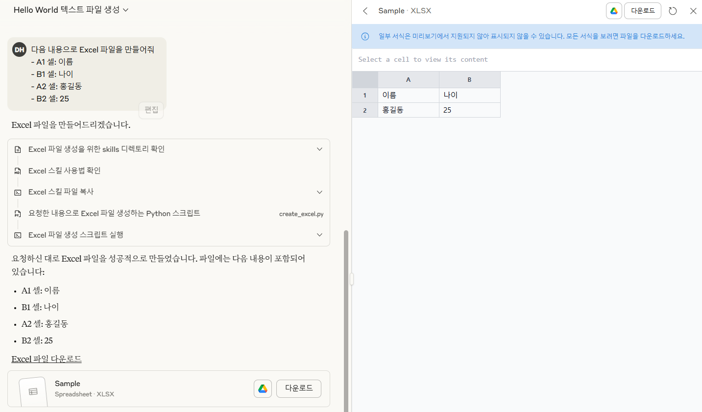 - 나쁜 예: "엑셀 파일 만들어줘"
