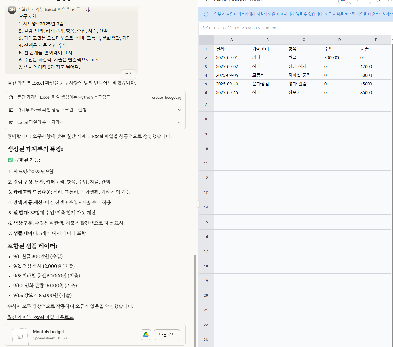 클로드 신기능 리뷰 - Upgraded file creation and analysis(Excel, Word, PowerPoint, PDF 파일 생성 및 편집)