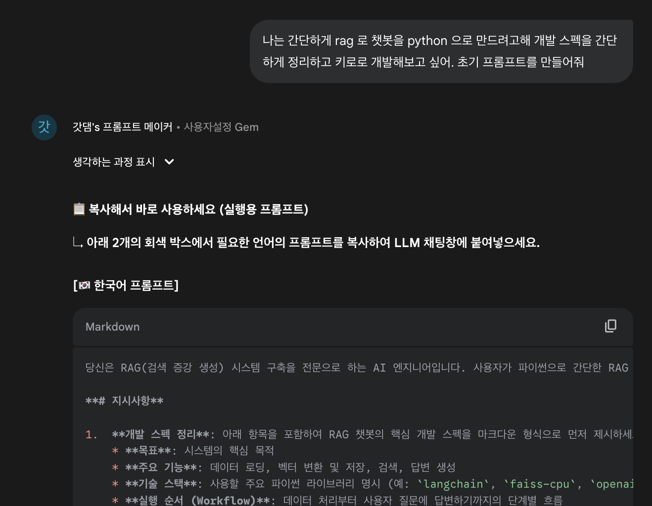 * **기술 스택**: 사용할 주요 파이썬 라이브러리 명시 (예: `langchain`, `faiss-cpu`, `openai`, `python-dotenv`)