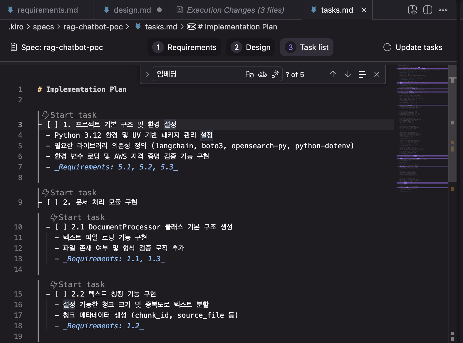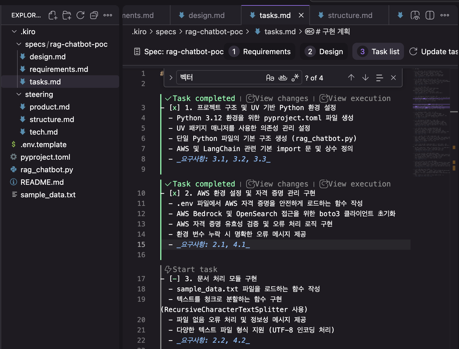 이번 포스팅에서는 Kiro IDE의 spec 기반 개발 방식을 통해 RAG 시스템을 개발하는 초기 프로젝트 구성하는 예시를 공유하려고 한다.