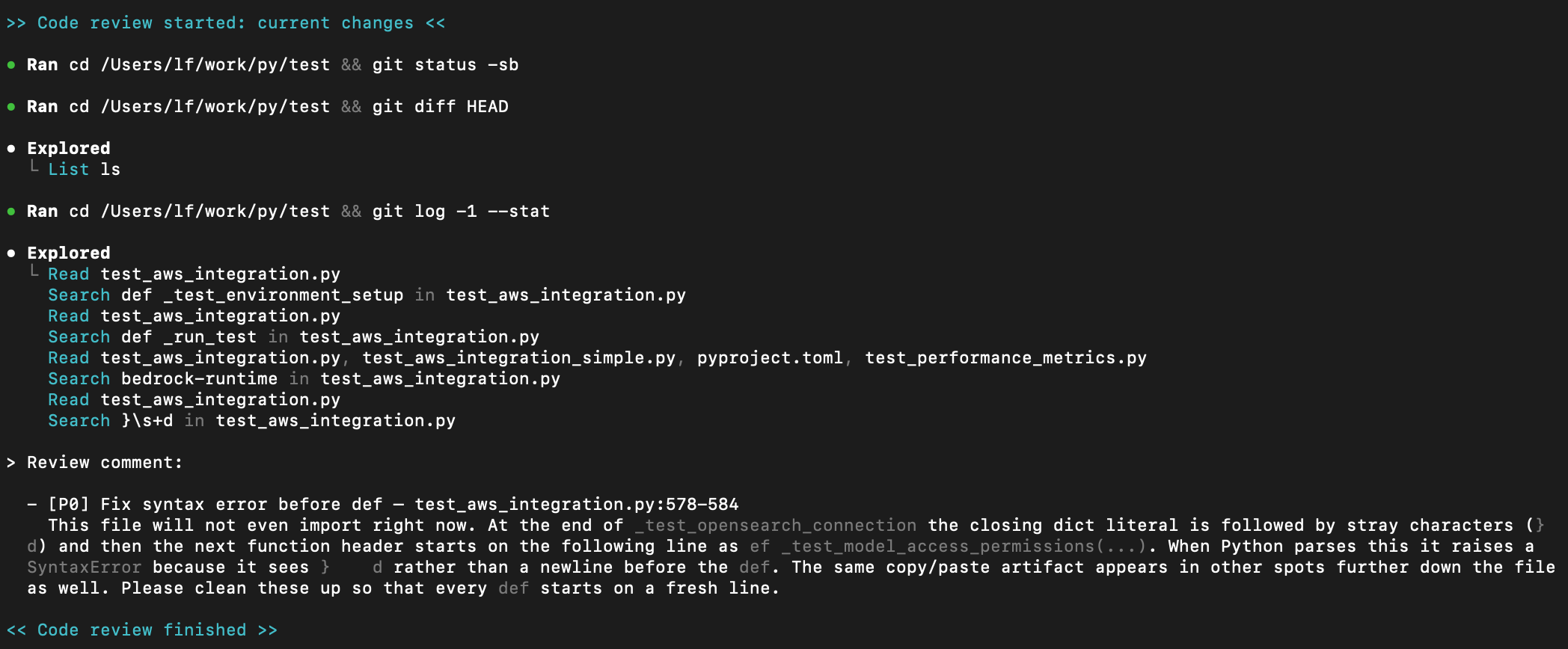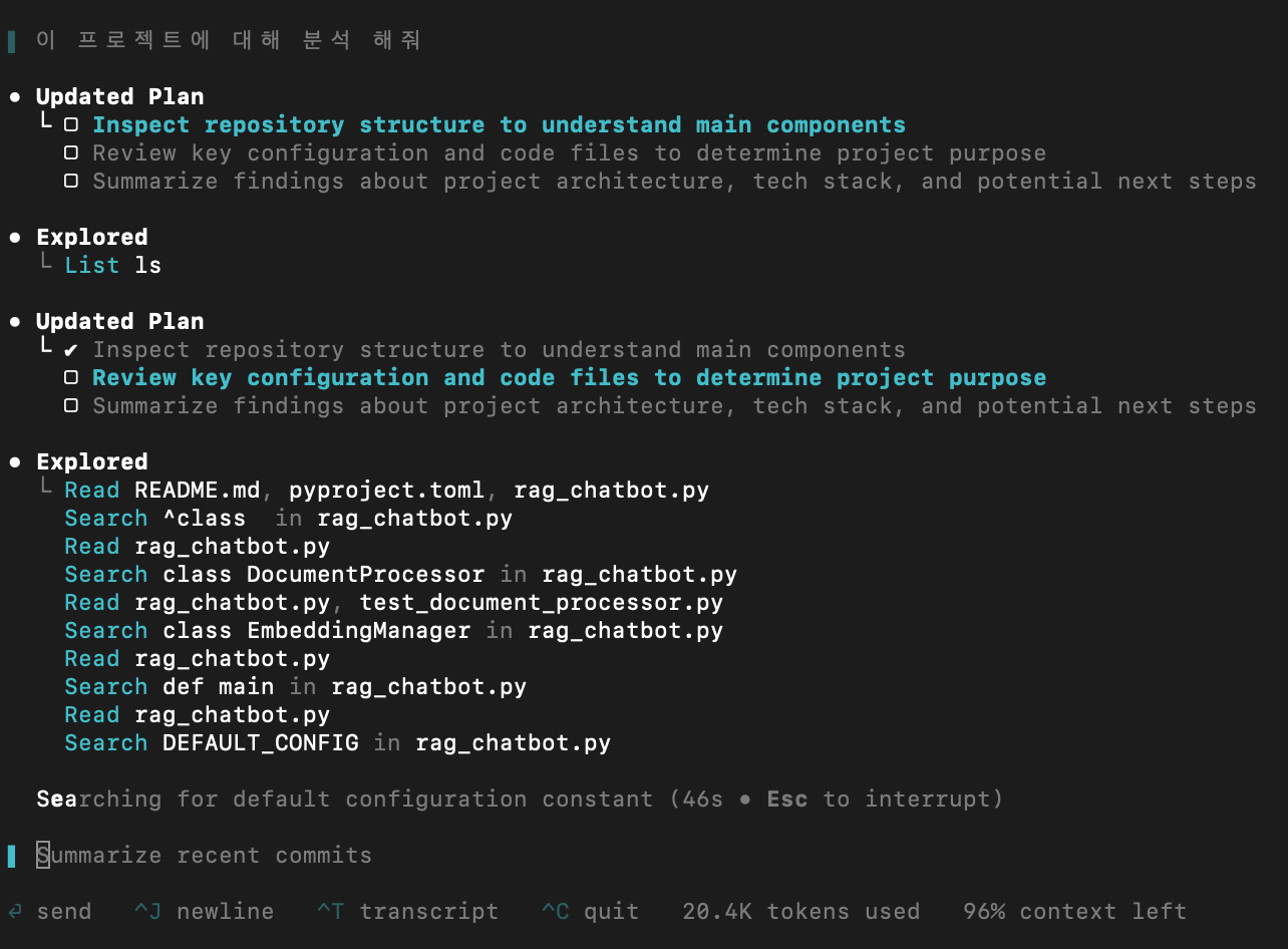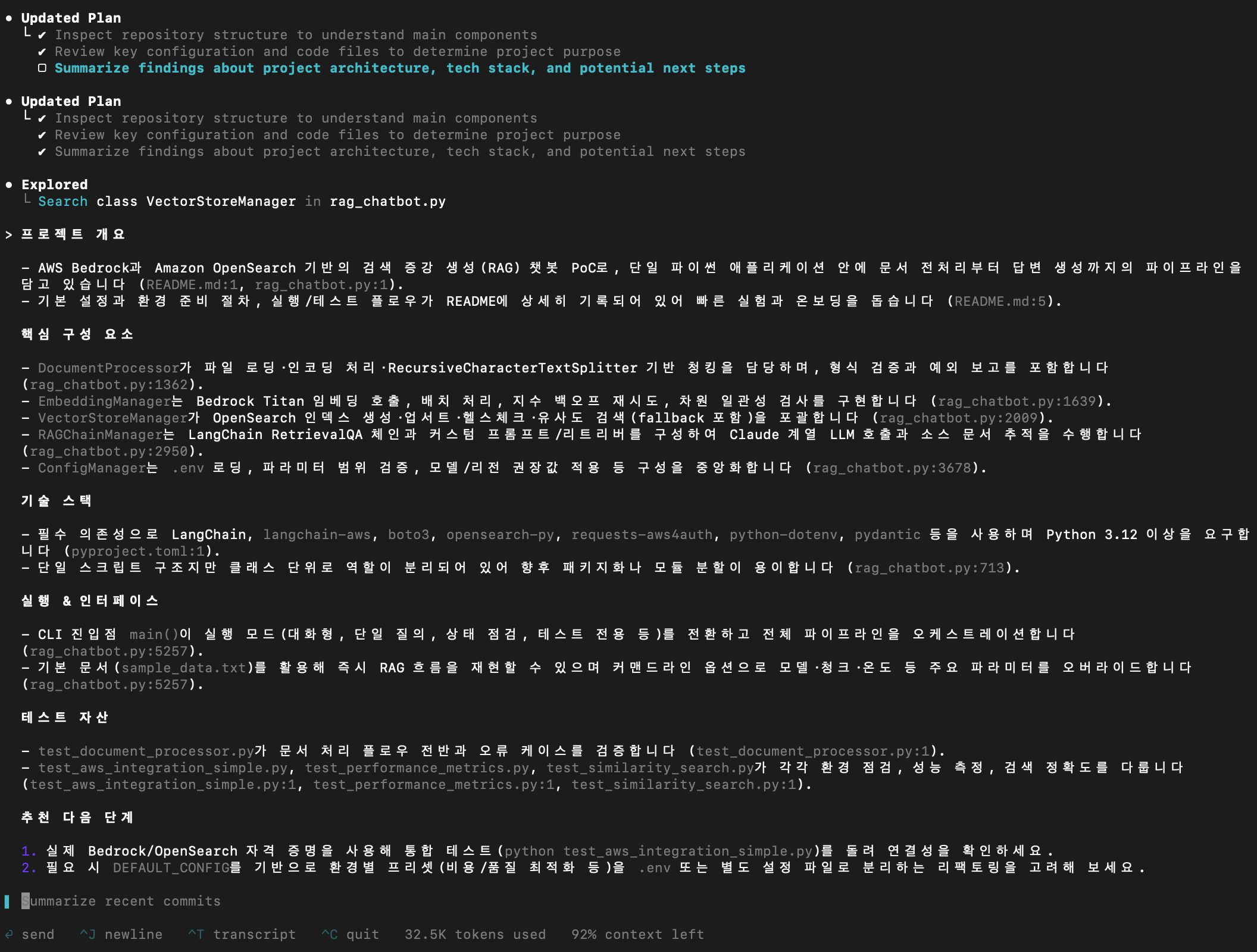 codex명령어 실행 - 자연어로 작업 요청 (예: "이 버그를 고쳐줘")