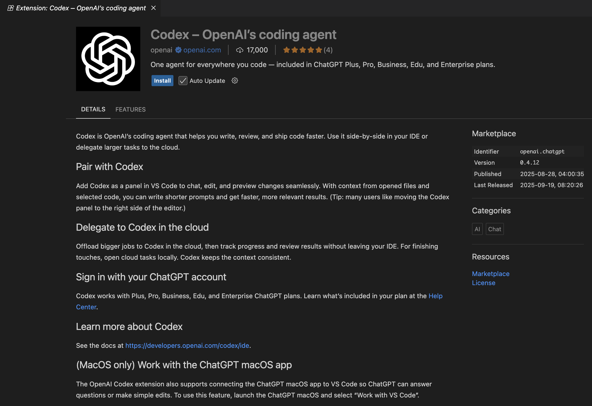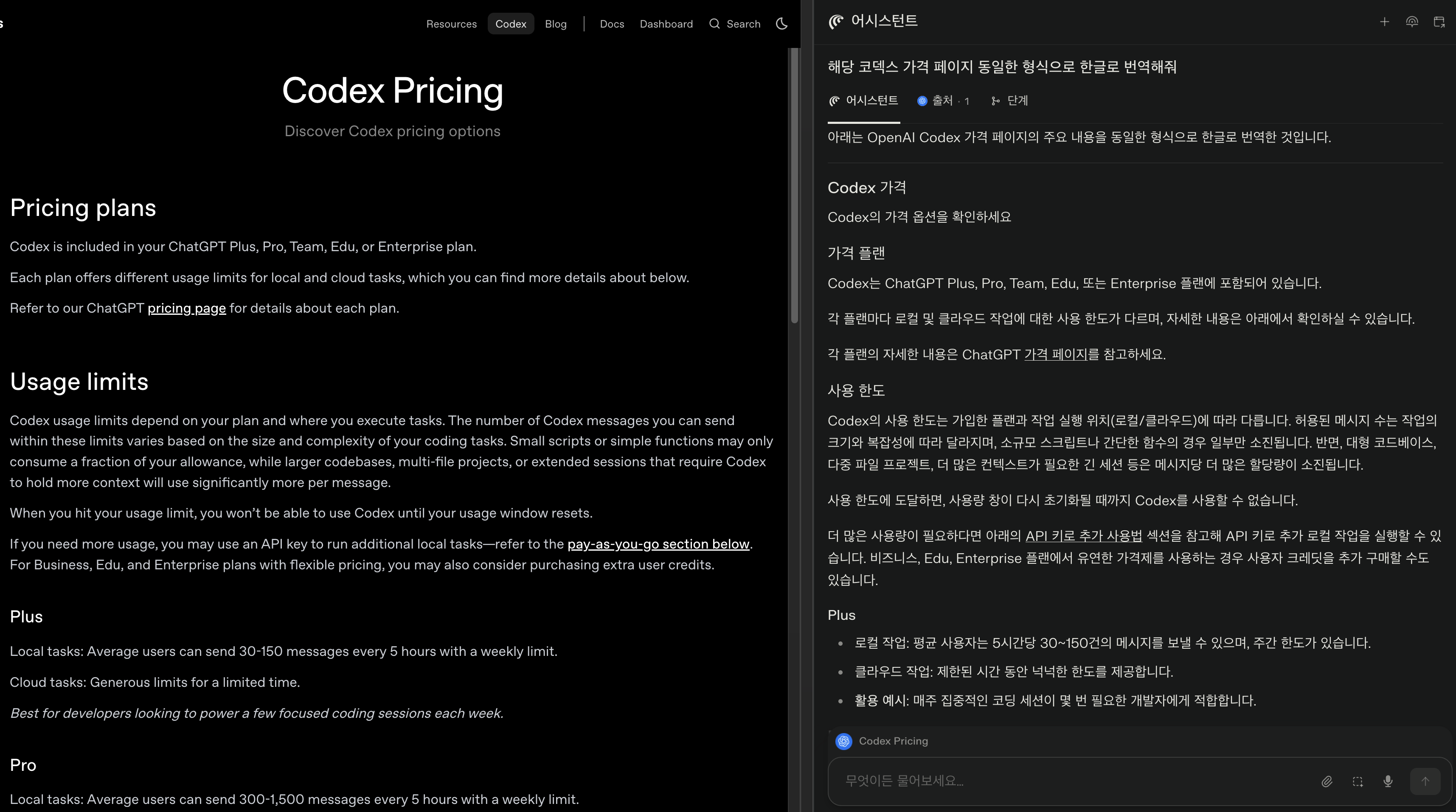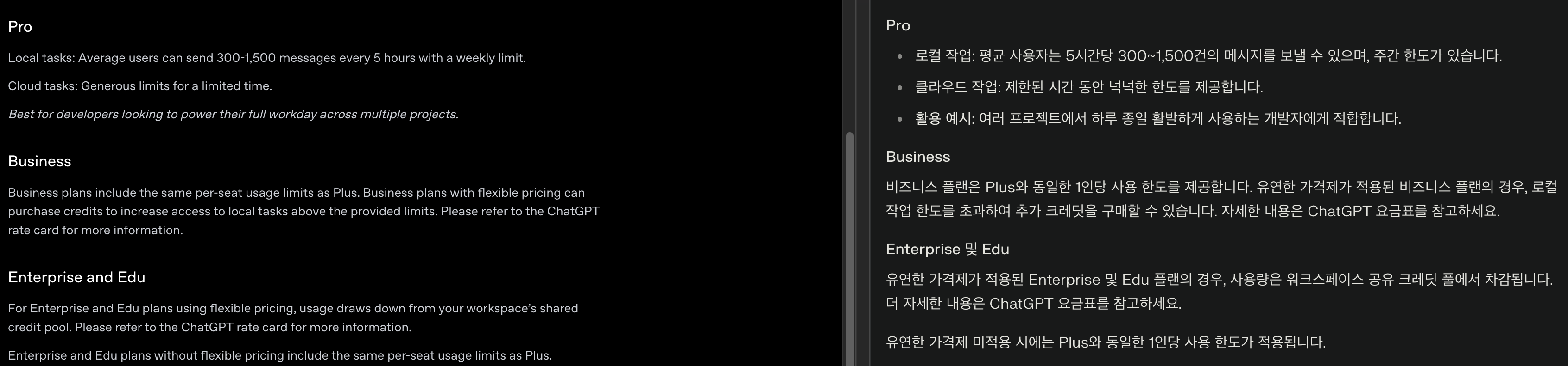 복잡한 레거시 프로젝트나 대규모 리팩토링쪽에서 강하다는 말이 좀 들리는데, ChatGPT Plus 구독만 있으면 바로 시작할 수 있으니, 아직 경험해보지 않았다면 꼭 한 번 시도해보면 좋을 것 같다.