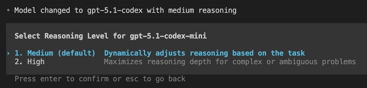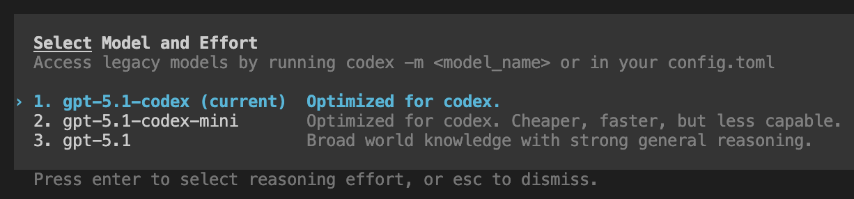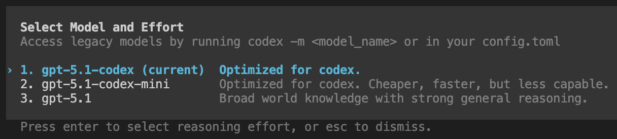 해결: /model 명령어로 GPT-5.1-Codex로 변경