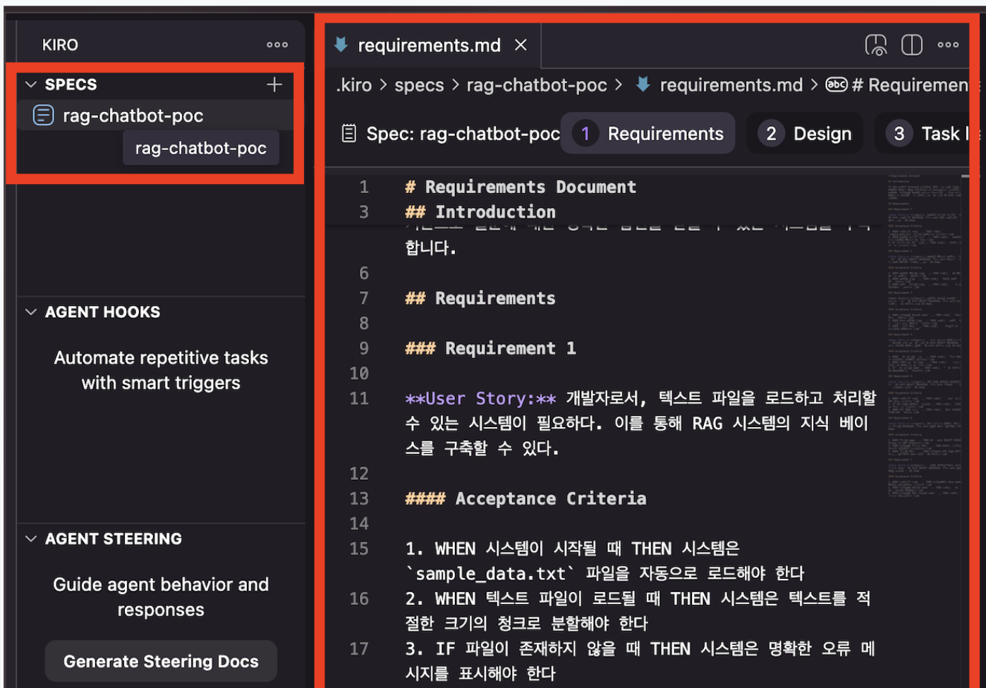 Kiro 스펙 기반 개발 방법(Spec Driven Development(SDD)) 사용 해보기(with RAG 개발 환경 구축)