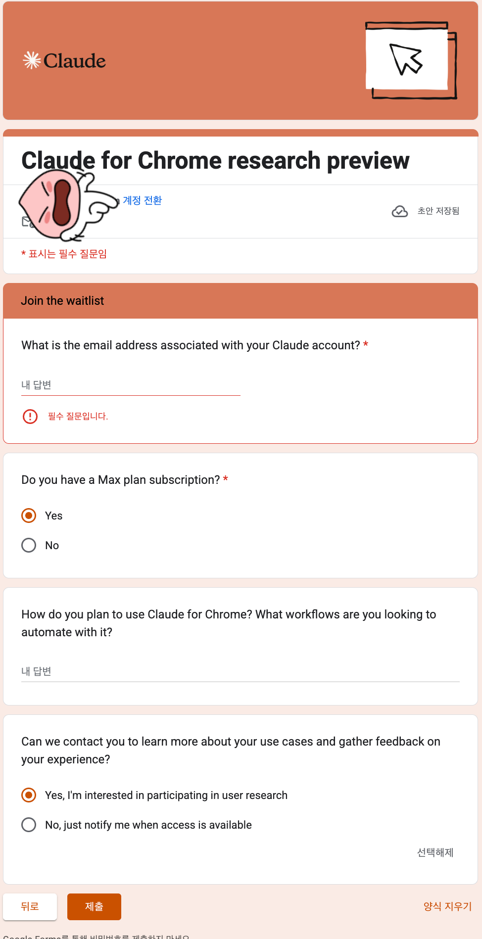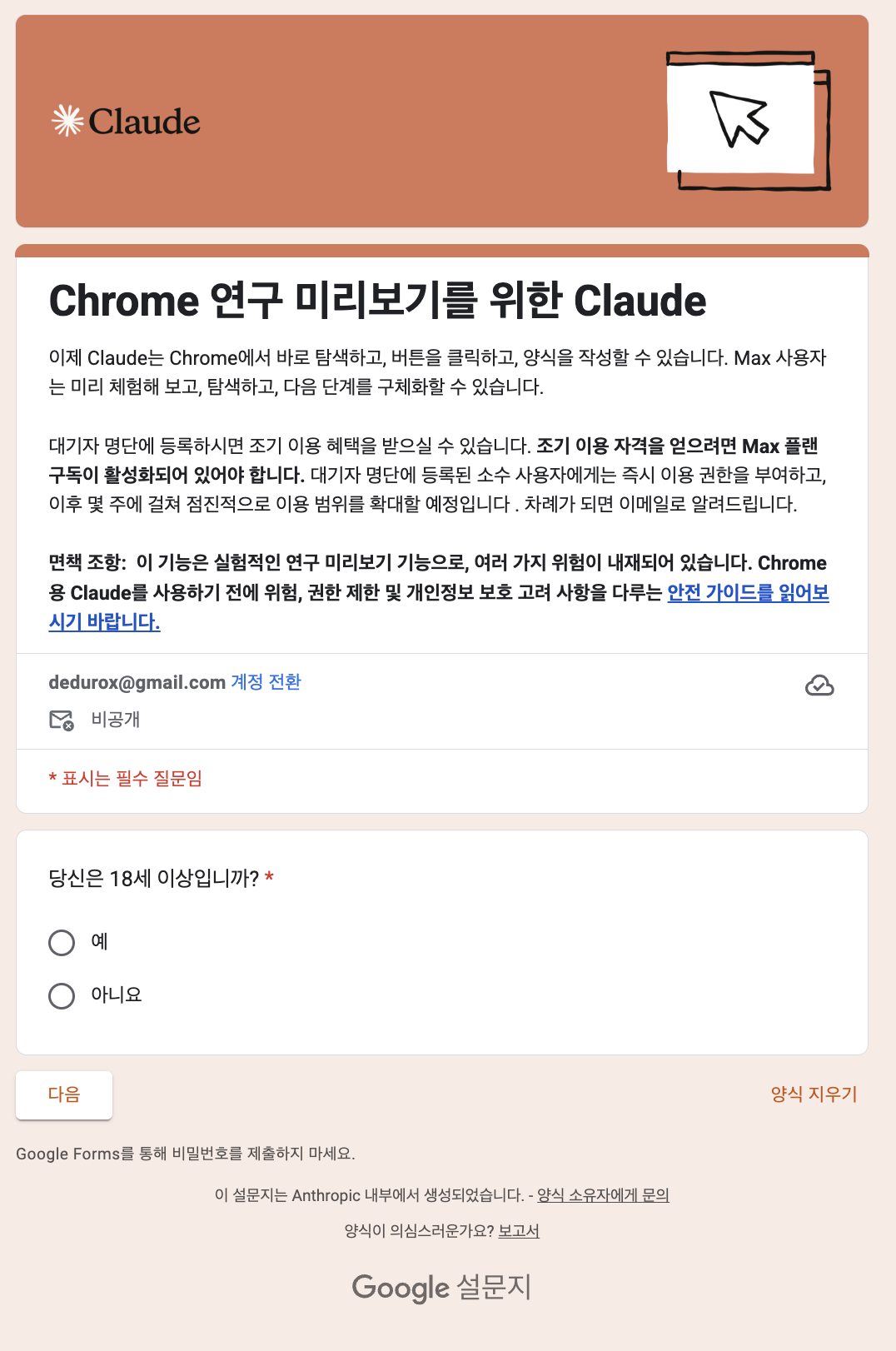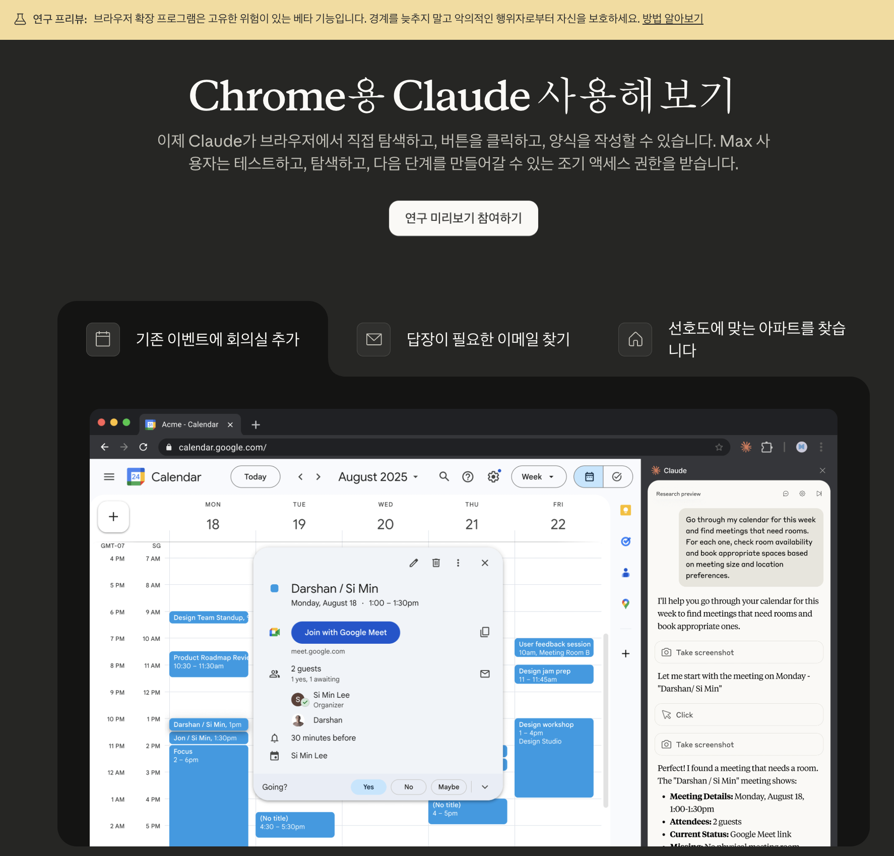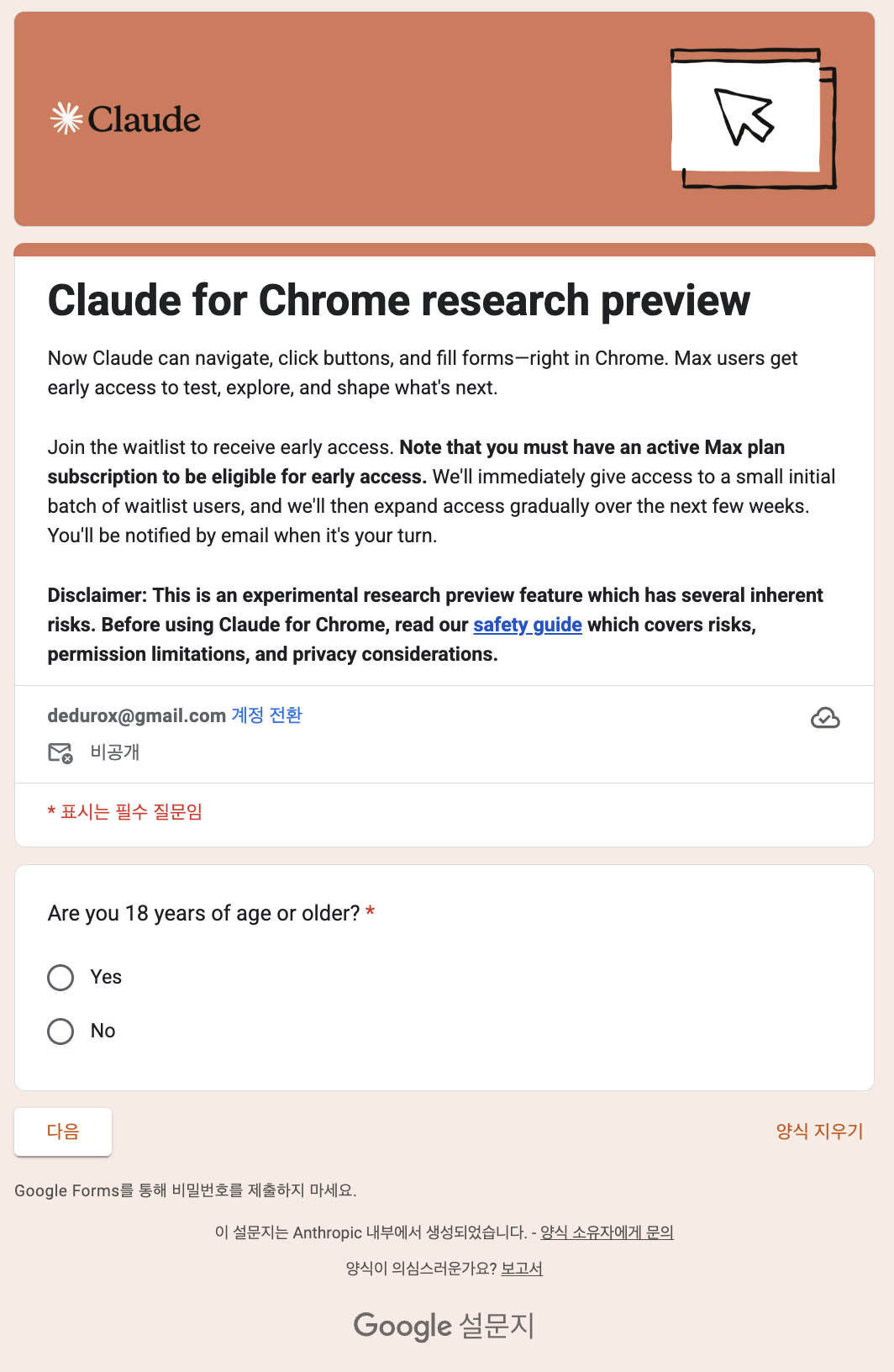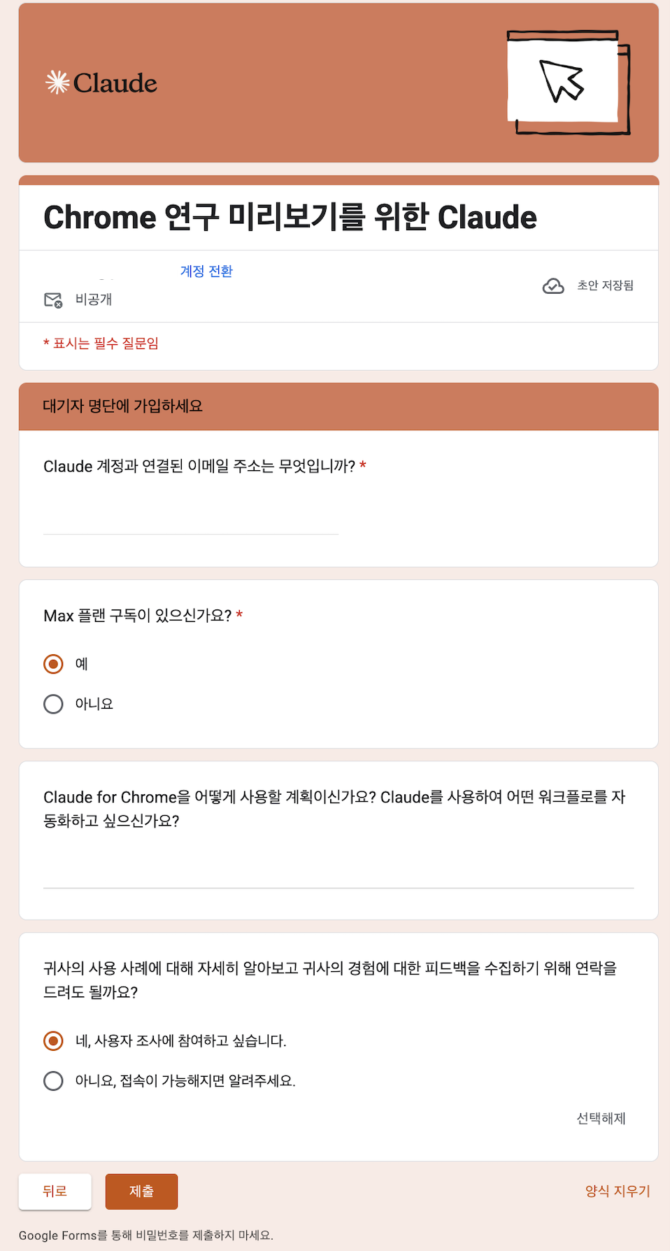 • 대기자 명단: claude.ai/chrome에서 신청 가능 ( 하기에 별도 작성 )