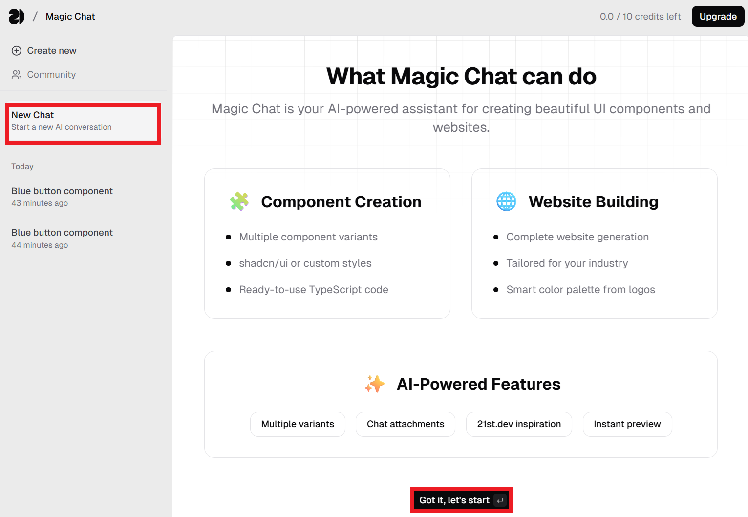 - 21st.dev Magic 공식 사이트 - API 키 발급, 최신 소식