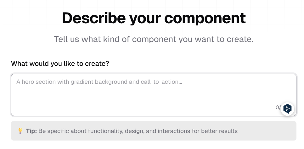 - AI 기반 생성: 자연어로 설명하면 컴포넌트를 만들어준다