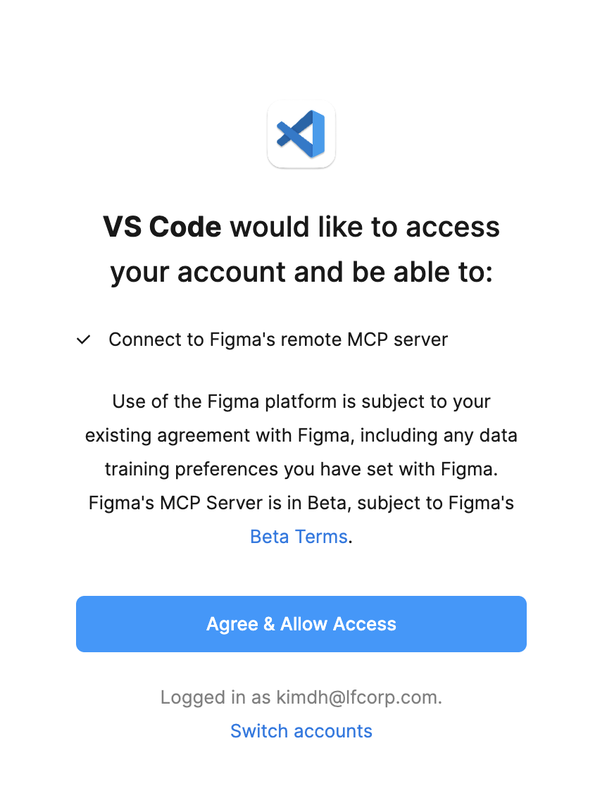 4. Figma OAuth 페이지에서 Allow Access 클릭