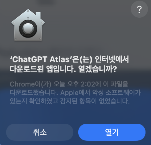 1. 다운로드: https://openai.com/index/introducing-chatgpt-atlas/ 접속 → "Download for macOS" 클릭 (.dmg 파일 약 500MB)