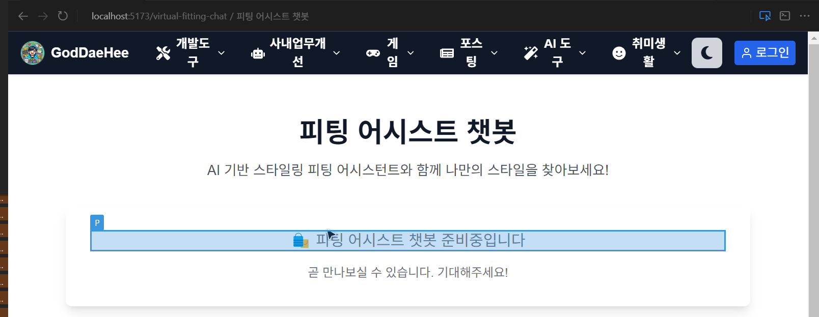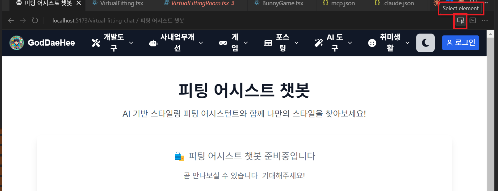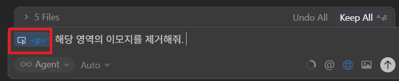 - 클릭한 영역이 바로 prompt창에 연동되어 바로 바이브 코딩을 이어 진행할 수 있다.