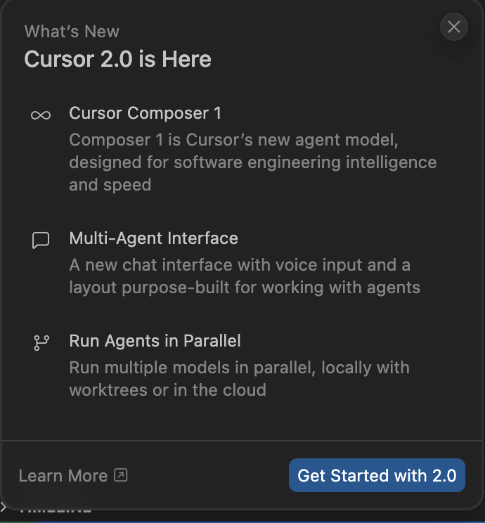 자체 개발한 Composer 모델의 4배 빠른 속도, Plan Mode를 통한 체계적인 계획 수립, Use Multiple Models로 여러 모델의 강점 비교, Parallel Agents를 통한 대규모 작업의 병렬 처리, 그리고 Background Agents의 자율적 실행까지 - 이 모든 기능이 조화롭게 작동하여 개발자의 생산성을 극대화려는 노력을 보여준 것 같다.