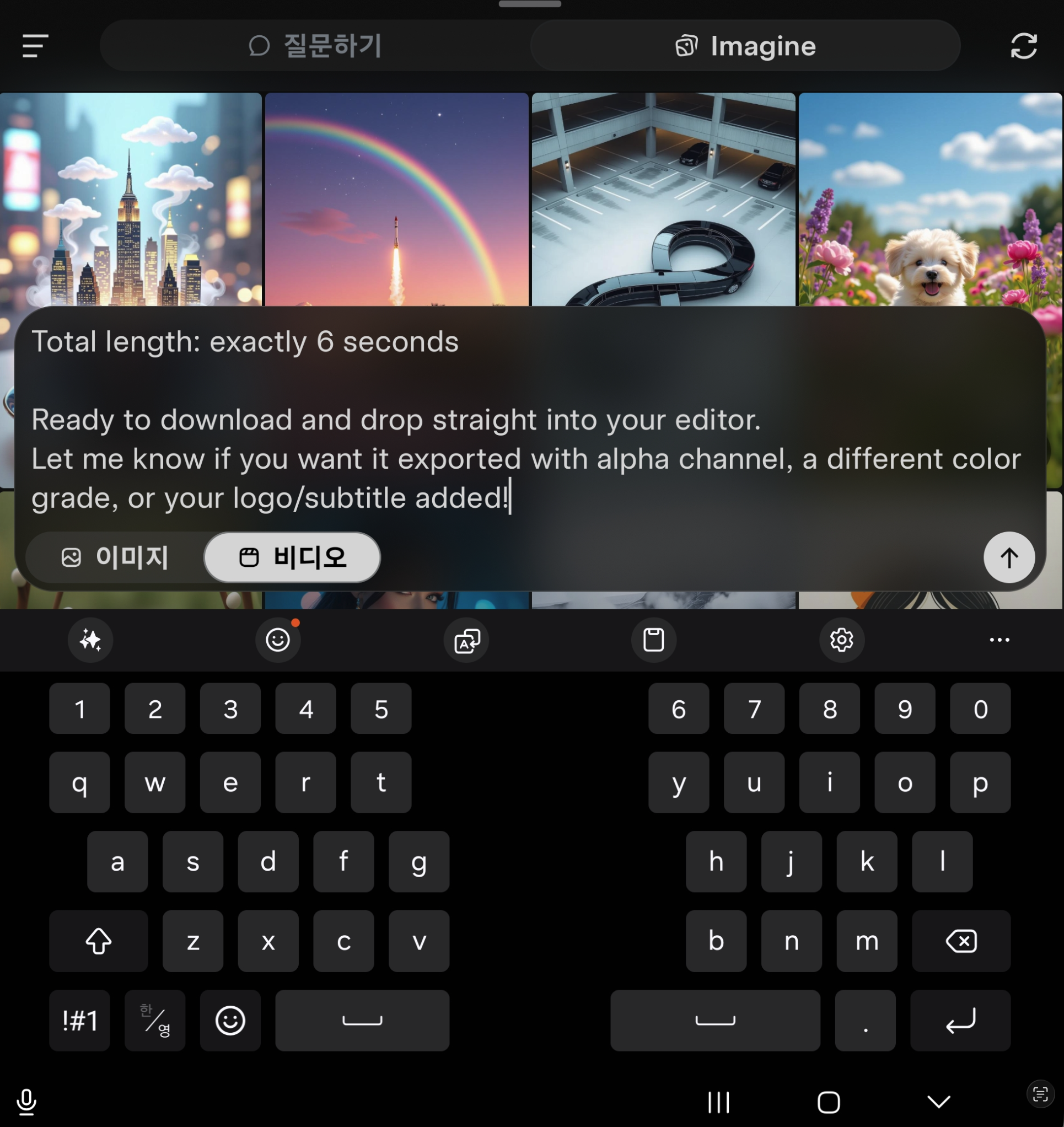Grok4.1로 생성한 영상이다. 이번 그록 업데이트는 이미지, 영상 생성에서 타 빅테크 기업들의 AI, Gemini, Chat GPT, Claude, 미드저니 등과 비교가 될정도로 성장한 모습이다. 생성하는 속도. 퀄리티가 매우 높아져서 그록... 도 구독을 해야하나 고민이 되는데. 일개 개발자에게는 무척이나 부담스러운 부분이다.