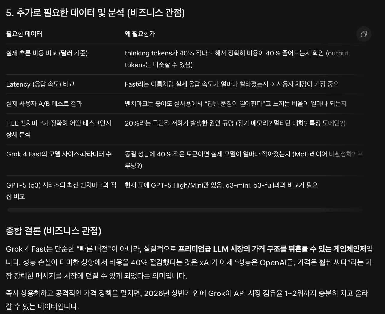 - Grok 4: SWE-bench ~75% (서드파티 평가) - 독립적 코딩 작업에 강점