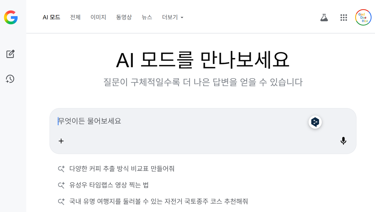 - Search AI Mode: Google 검색에 통합된 AI (출시일 당일 통합)