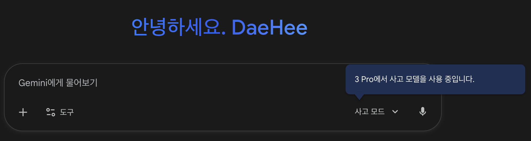 오늘도 Gemini와 인사를 나누려는 순간! 하기 모델 선택 창에서 평소와는 다른 UI에 어색함을 느끼고, 자세히 살펴보니 "3 Pro"라고 나오는 것이었다.