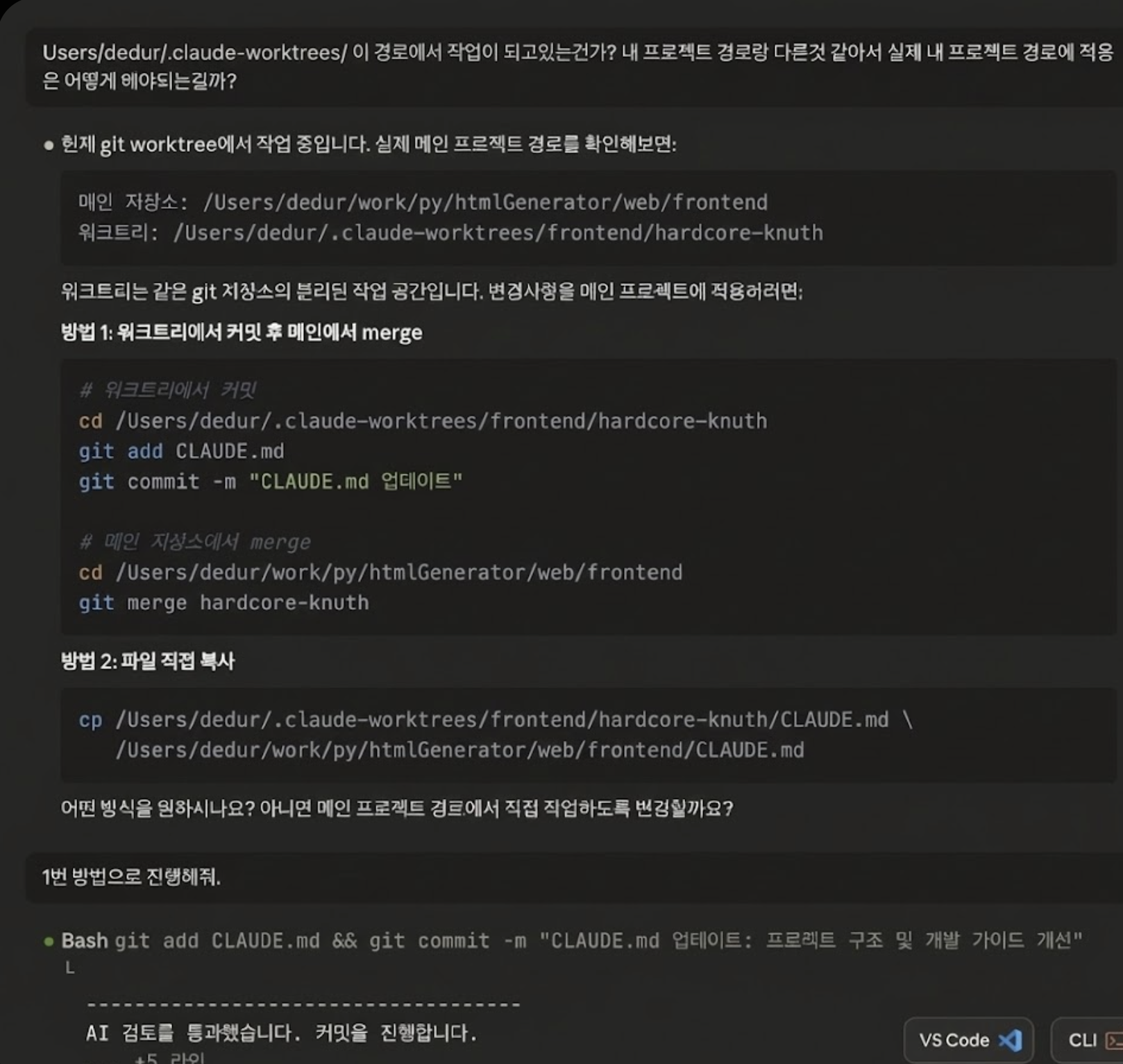 2. Git worktree 기반 병렬 세션으로 여러 작업 동시 진행 (버그 수정 + 리서치 + 문서화)
