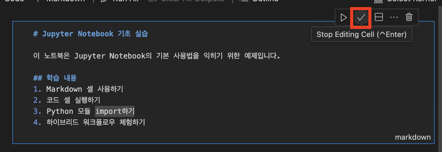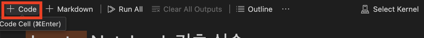• VS Code Jupyter 확장의 단축키는 버전에 따라 다를 수 있다