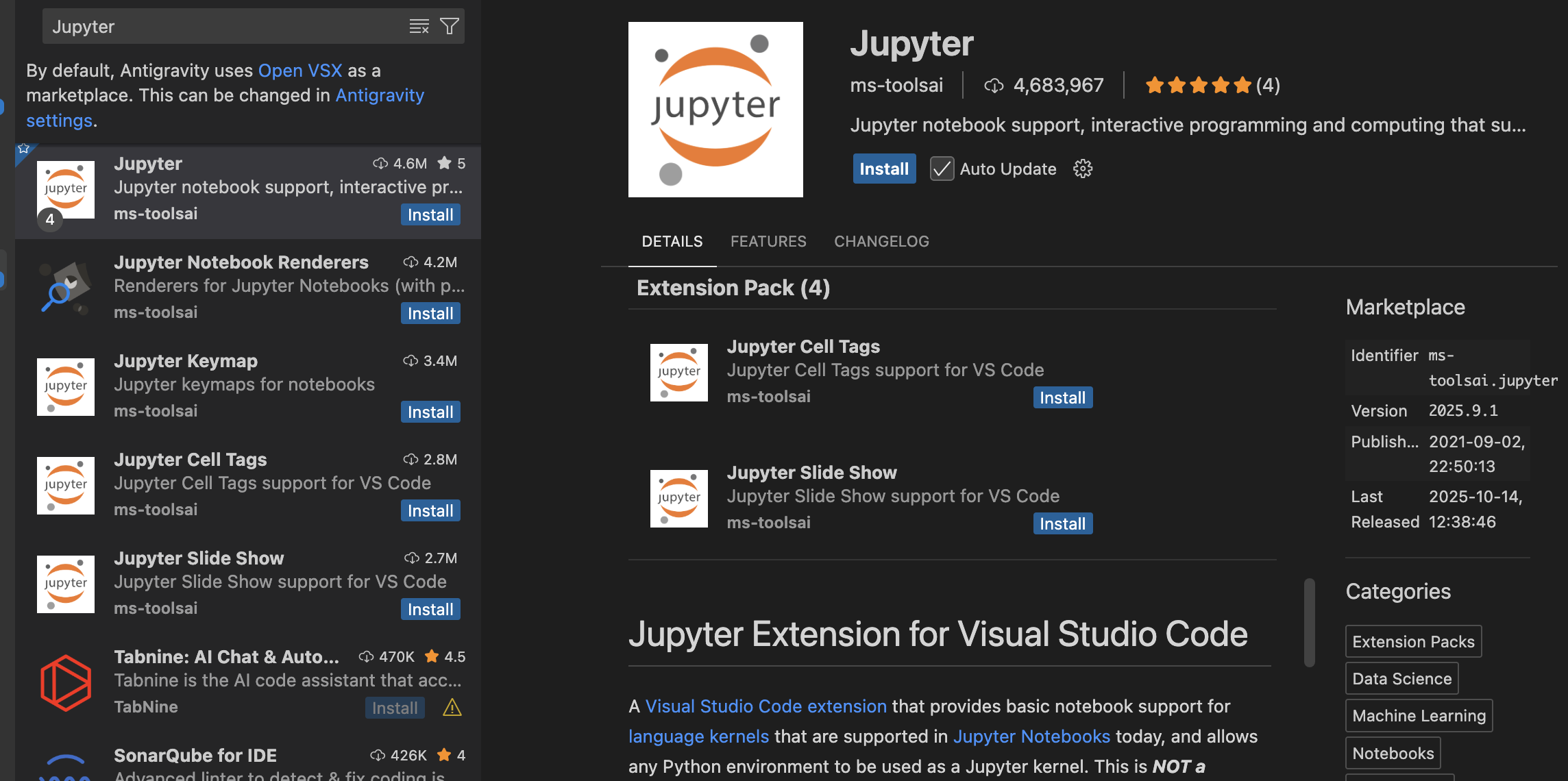 code --install-extension ms-toolsai.jupyter