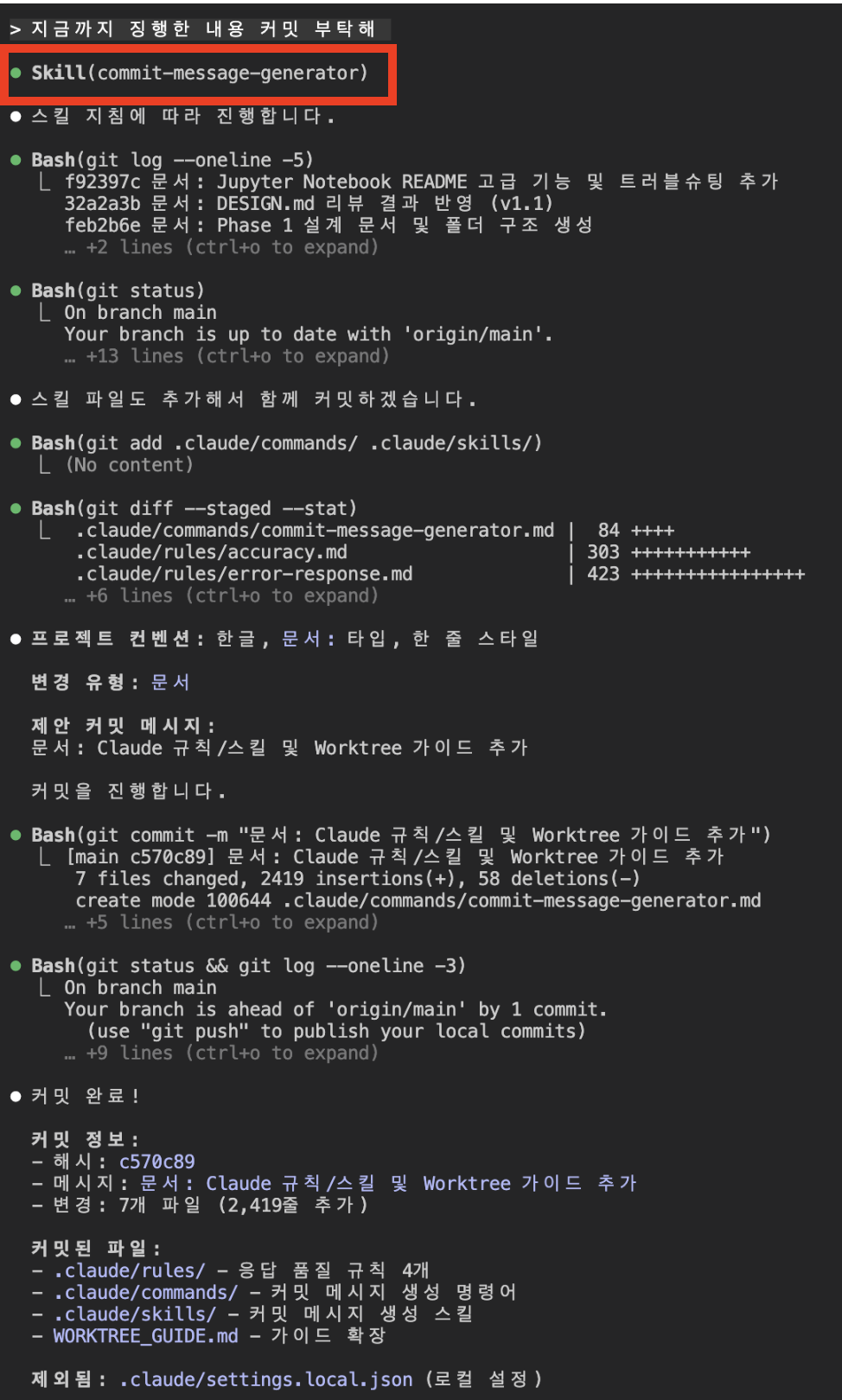 - Skill 도구 호출: 매칭되는 Skill 발견 시 내부적으로 Skill 도구 실행