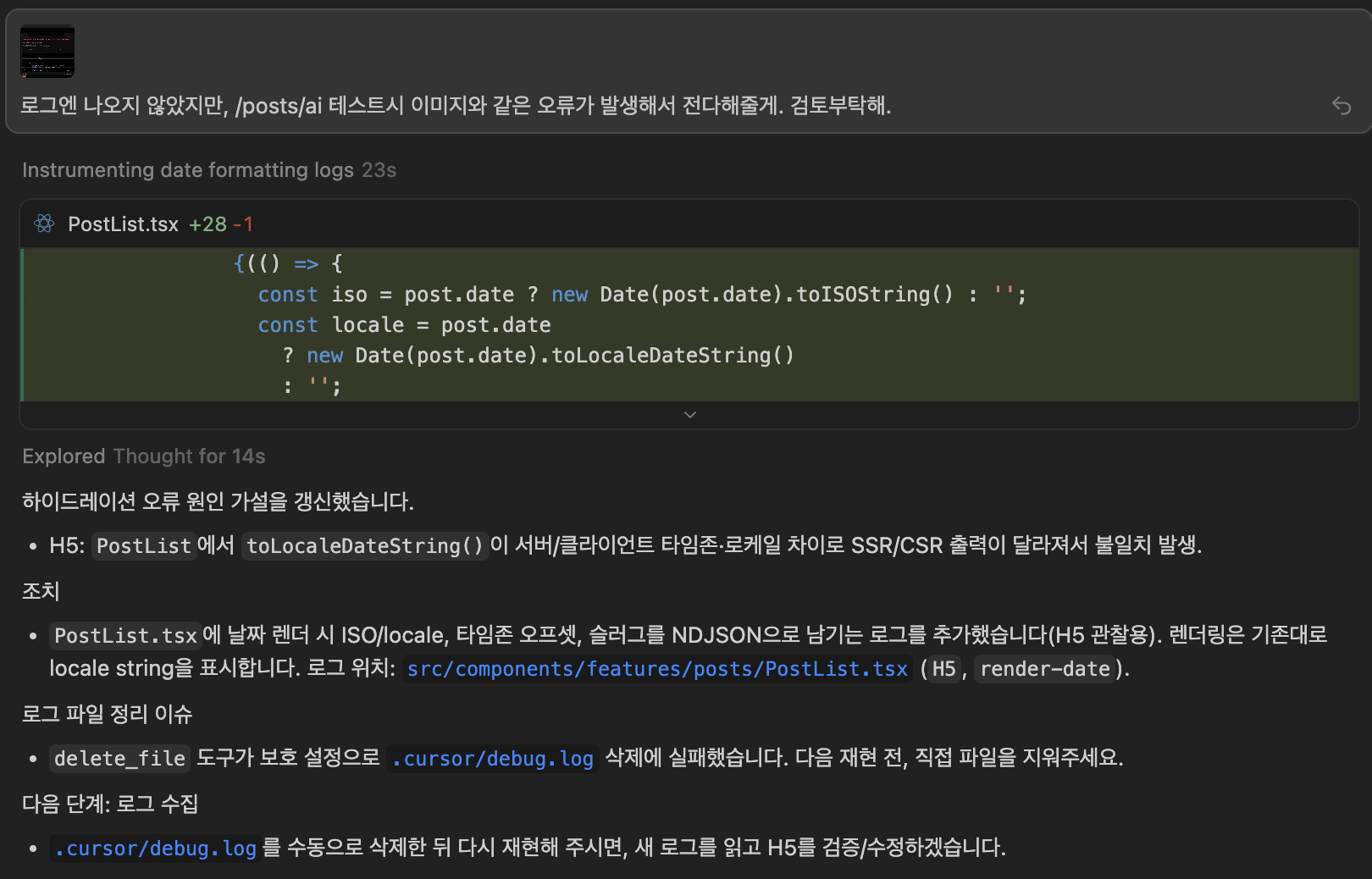 - Cursor 커뮤니티 포럼 - Debug Mode 피드백 - 사용자 경험 공유