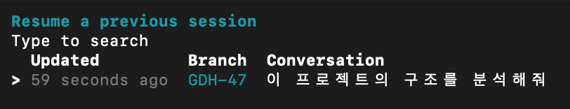 - /resume 을 통해 이전에 진행중이던 session을 확인 하여 재개 할 수 있다.