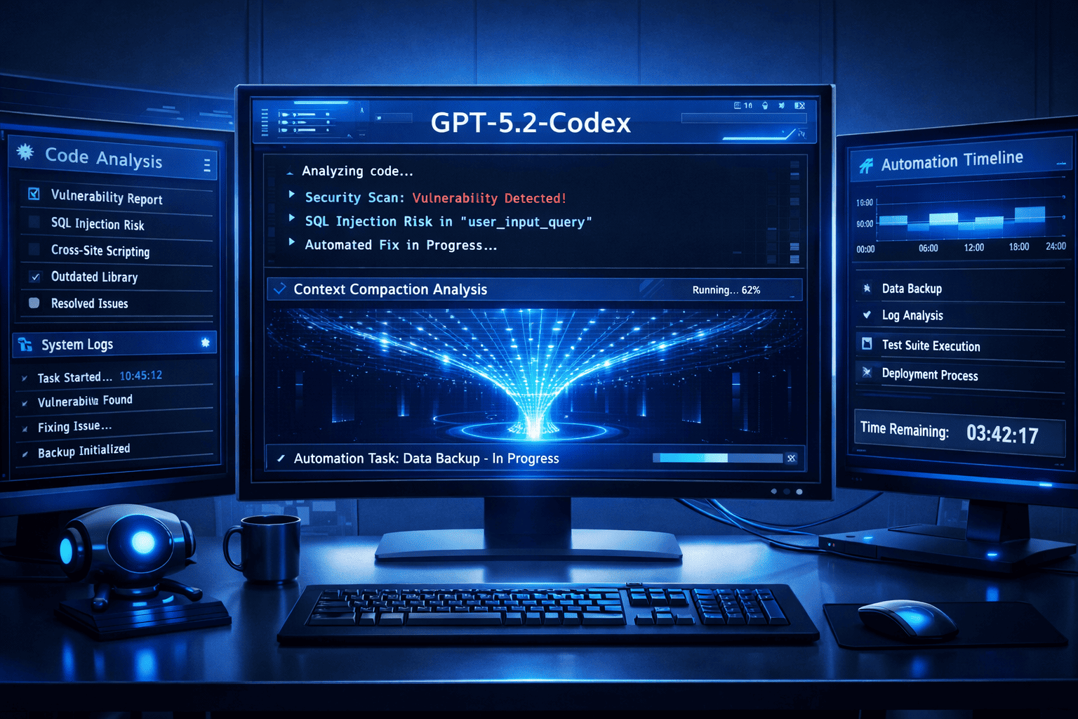 OpenAI가 2025년 12월 18일, 코딩 전문 AI 모델의 새로운 이정표를 세웠다. GPT-5.2-Codex는 단순한 코드 생성을 넘어, 복잡한 대규모 리팩토링, 마이그레이션, 그리고 실제 보안 취약점 탐지까지 가능한 "에이전틱 코딩 모델"이다.
